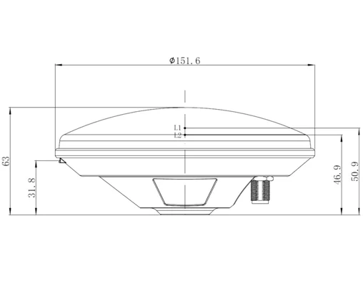 Antenna Specifications Working frequency:GPSL1/L2 BeiDouB1/B2/B3 GLONASSG1/G2 GalileoE1/E5b Polarization type:RHCP Impendence:50Ω Horizontal coverage angle:360° Output VSWR:≤1.5 Antenna AR:≤3dB Phase center error:≤3mm LNA Specifications LNA Gain:40±2dB Noise figure:≤1.5dB Output VSWR:≤1.5 Operating voltage:+3V~+16V Operating current:≤50mA Structural Characteristics Connector :TNC-K (Female),Support customization Antenna size(mm):Ф151.6mm×63mm Weight(g):≤383g Working Environment Operating temperature(℃)-40℃:~+70℃ Storage temperature(℃)-55℃:~+85℃ Waterproof grade:IP67