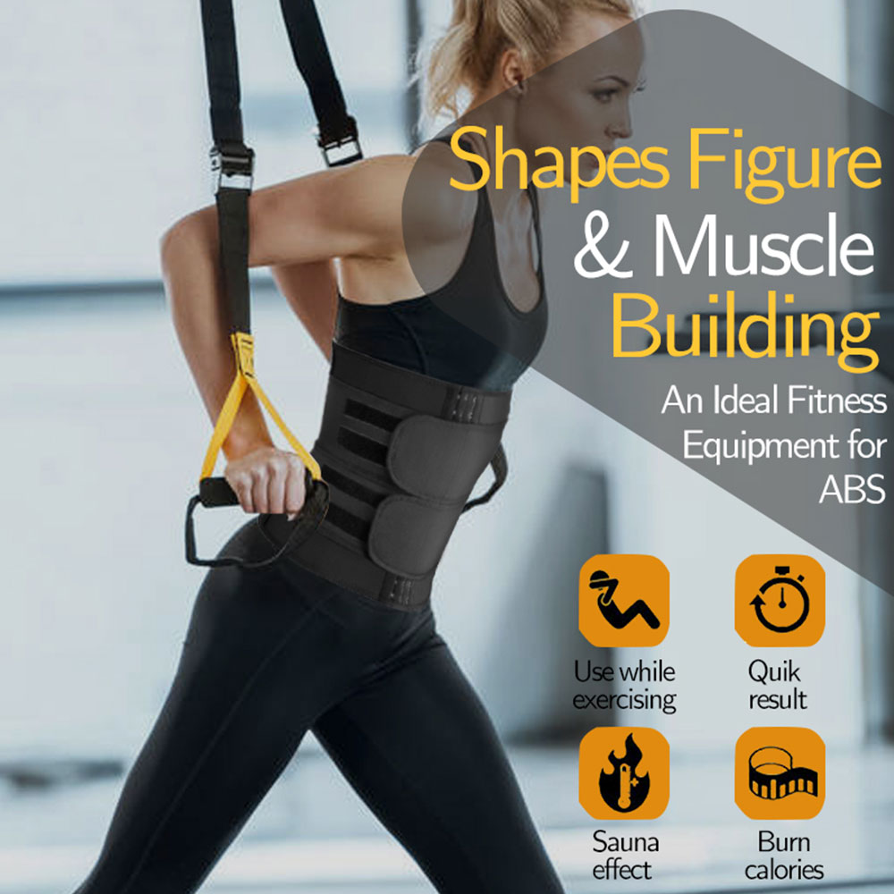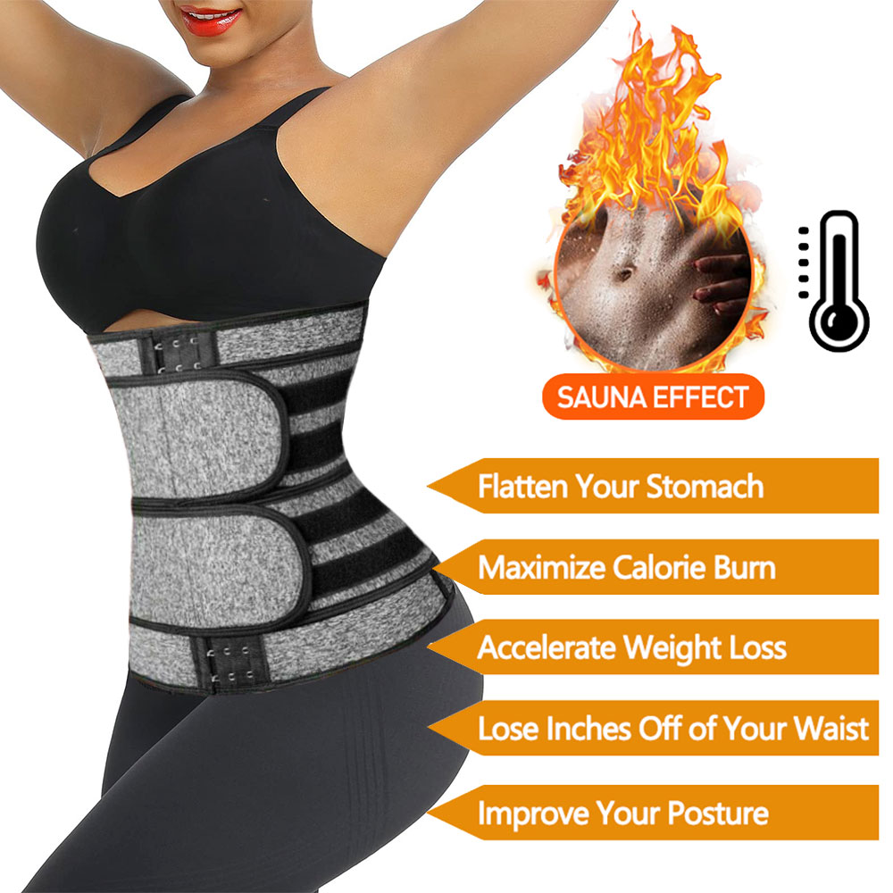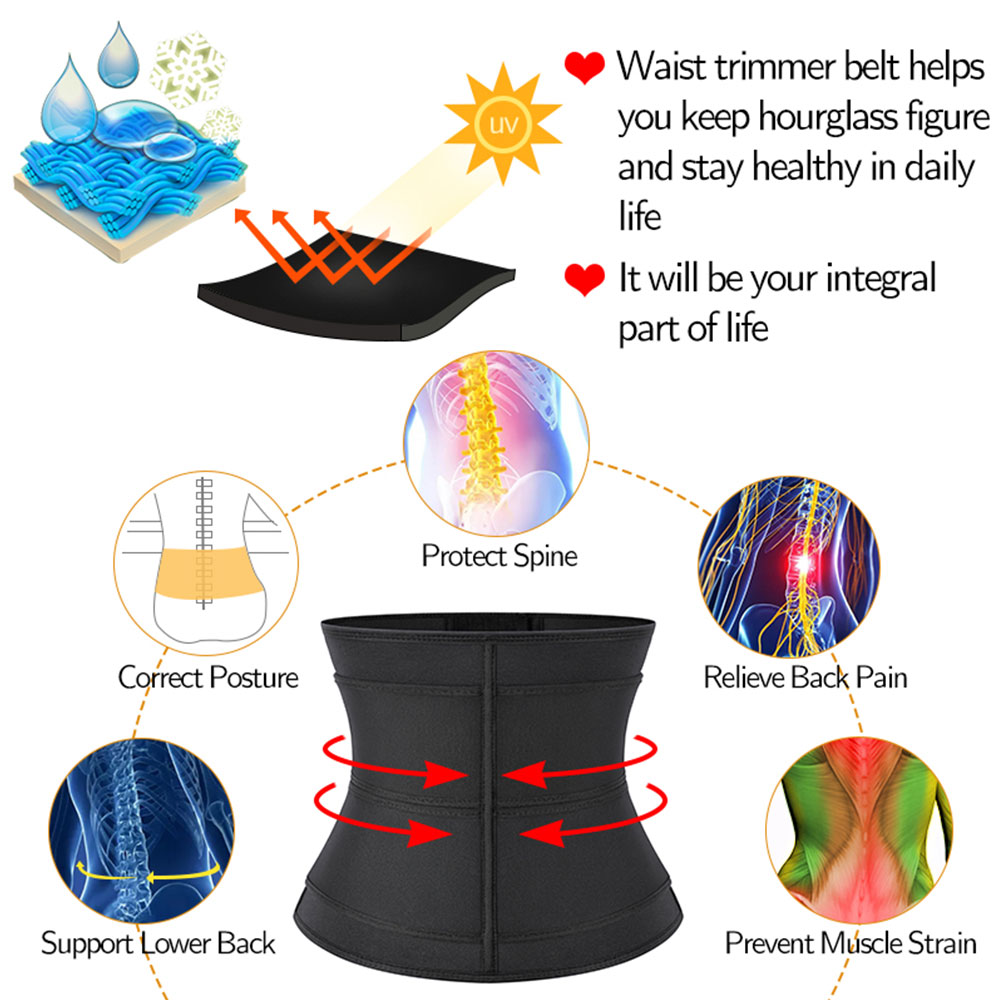 Description Color:Black Size:XS/S/M/L/XL/2XL/3XL Effect:Make you sweat more easily in sports. Bones:9 Pieces Spiral Steel Bones Advantage:Weight loss,waist trainer,workout bands,Postpartum recovery Unique steel bone Design:steel bone design,closer to the waist; Super thick neoprene material:2.5mm neoprene fabric,heat-insulating, impervious, airtight Warehouse Location:China,United States Material:Shell:Polyester100%;Lining:Neoprene100%.Neoprene will stimulate your core heat activity, helping you to increase perspiration and allow toxins to escape and helps with weight loss and waist sculpturing and shaping. DOUBLE VELCRO TUMMY CONTROL:Double Velcro effectively provides firm pressure on the waist and abdomen. It can quickly increase the temperature of the abdomen to burn fat, removing excess sweat weight during exercise, help you control your tummy ,and accelerate lose weight achieve the ideal shape of the hourglass curve, you will show a new outlook. ZIPPER FRONT CLOSURE ADJUSTABLE WAISTBAND WITH hook & loop:The front zipper keeps the waist close to the waist, reducing the long-lasting waist tension during weight loss and making it easy to put on and take off. The sturdy Velcro provides full compression and control to flatten the stomach, which will help you increase your body temperature during exercise and burn more fat in your abdomen, and adjust to your needs. Effect:Increased body heat helps to trim you, removing excess sweat weight during exercise. It helps you improve your posture with the flexibility and durability. Help you control your tummy, you will show a new outlook .