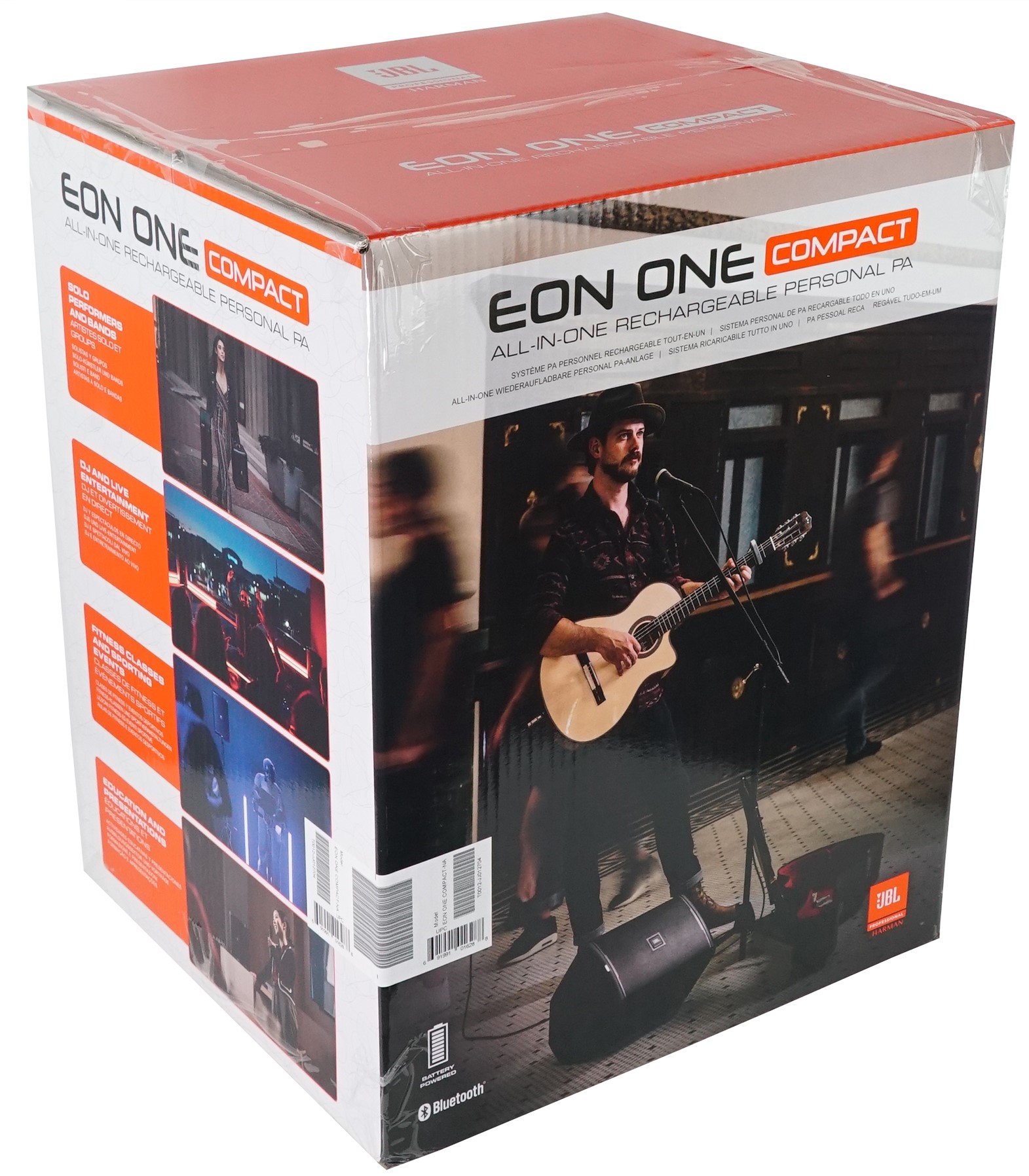 The days of sacrificing sound system power and performance for portability are over. The JBL EON ONE Compact packs a professional speaker, a full-featured, 4-channel mixer and Bluetooth control into our most compact battery-powered PA, weighing in at just 17.6 pounds (8kg). Sound your best in seconds with premium Lexicon and dbx-inspired effects and presets that you can customize right on your phone or tablet using the JBL Compact Connect app—no engineer needed. Presenters, fitness instructors and emcees will appreciate EON ONE Compact's ducking feature, which lowers background music volume when speech input is detected. Peer-to-peer Bluetooth lets you broadcast music playback on up to four units from a single device. And with EON ONE Compact's tool-free, swappable 12-hour battery, you'll keep the party going long after the sun goes down. Whether you're a singer/songwriter, DJ, presenter, fitness instructor, or you just want to enjoy amazing sound on the go, get ready to #PlayAnywhere with JBL EON ONE Compact.