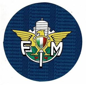 Italian race sanction sticker decal 2" diameter official FIM moto club Italy. Ship as many decal stickers as you want for just $4.99 in the USA.