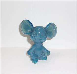 Fenton Glass Geoargia Blue Mouse Figurine Mosser Made In USA