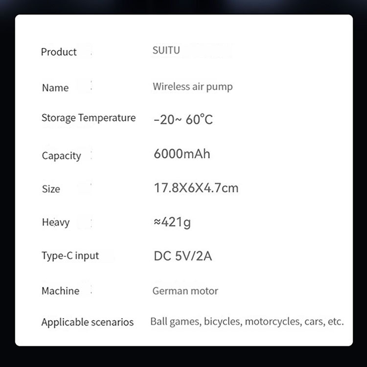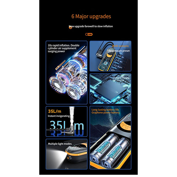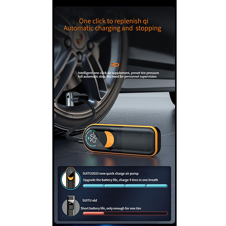 l Adopting rated voltage 7.4V wireless air pump, with its own lighting, inflate at night without darkness