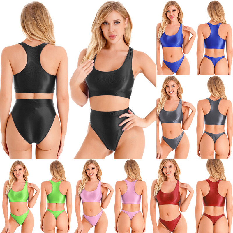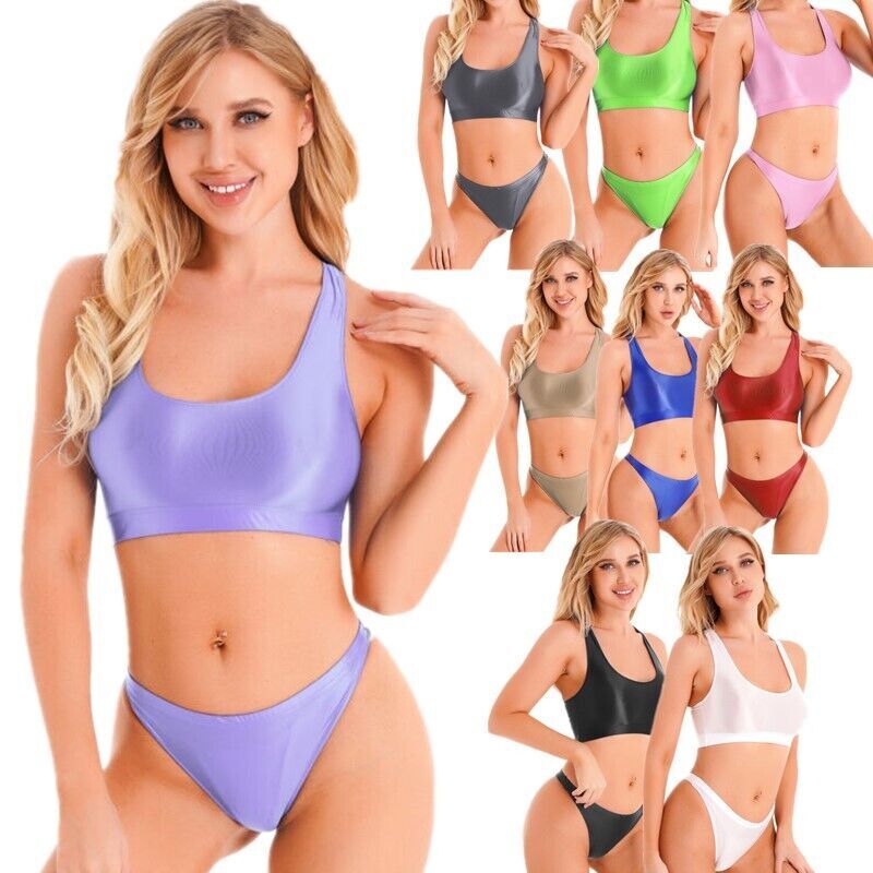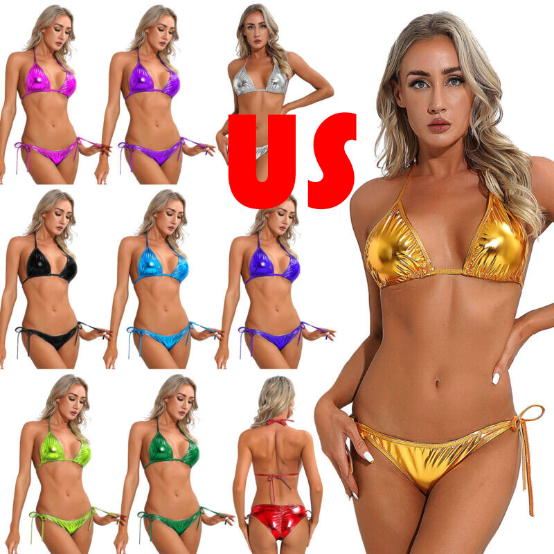 Womens Glossy Micro Bikini Set Lingerie Suit Pool Party Costume Swimwear.