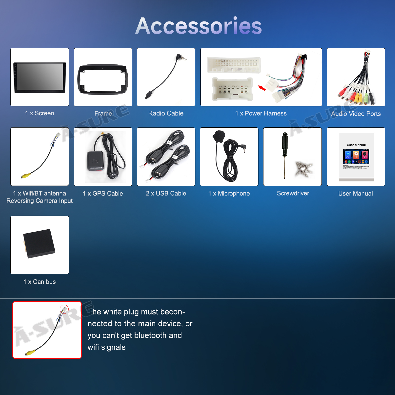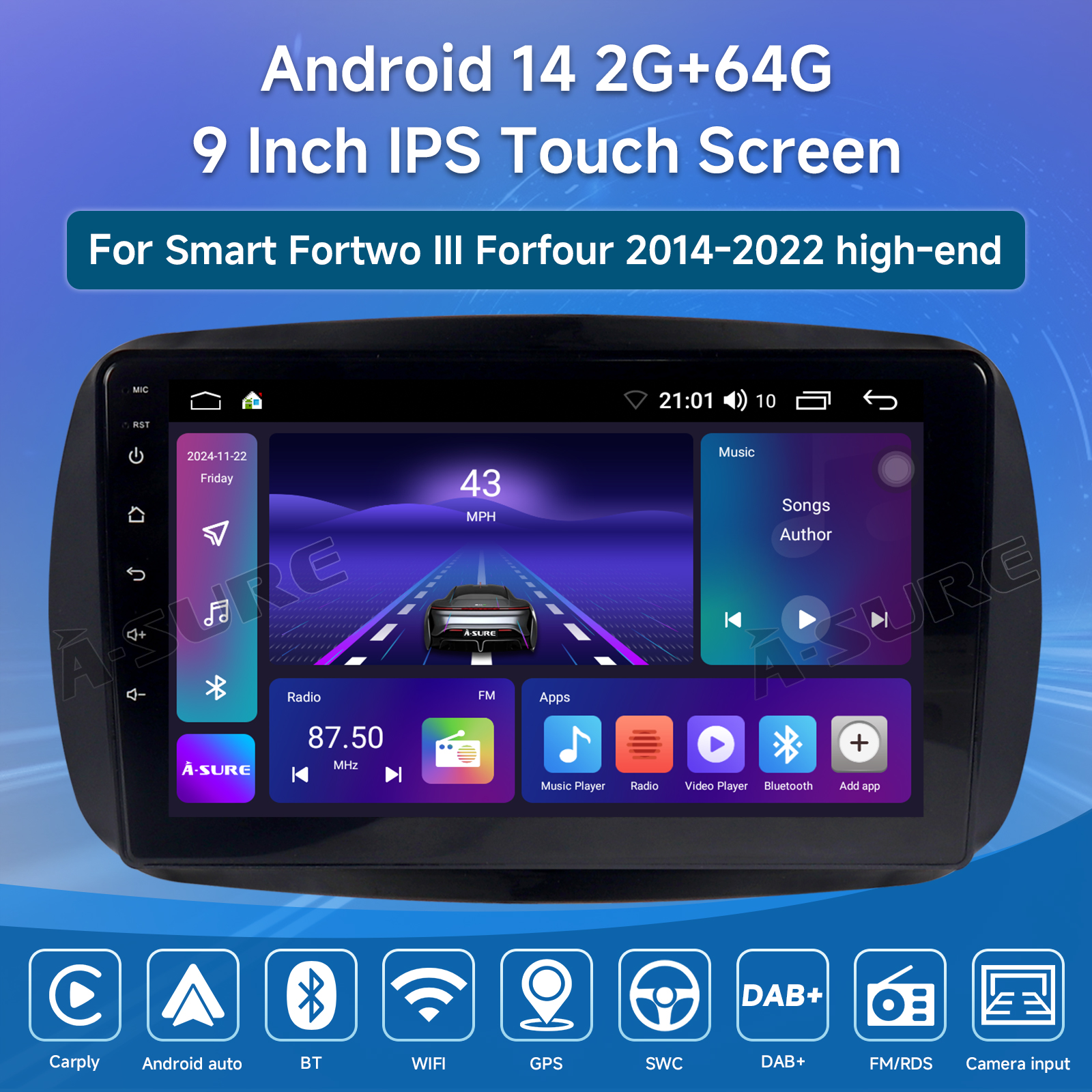 - Bluetooth function: Built-in bluetooth module, support bluetooth phone connect, handsfree for calling or bluetooth music play