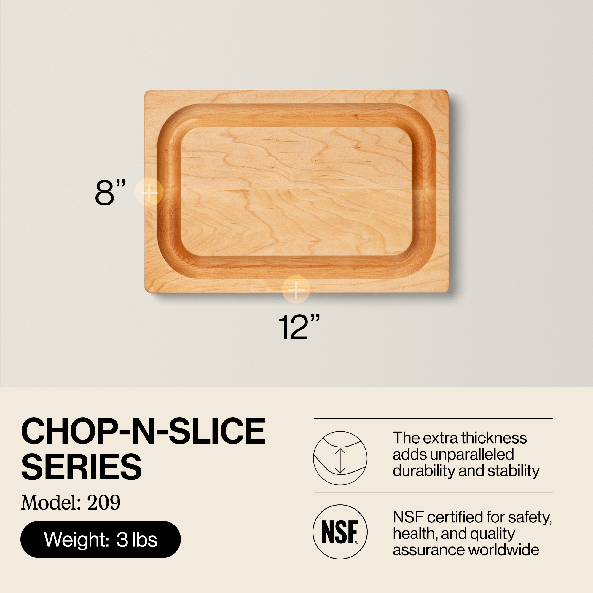 Made in our home and crafted for yours, the John Boos Chop-N-Slice cutting board is a versatile kitchen essential designed to elevate your culinary experience. Crafted from high-quality wood and made in the USA, it boasts a sturdy 1-inch thickness, making it perfect for everyday chopping and slicing tasks. Equipped with a reversible design, this countertop cutting board features a functional juice groove to prevent spills and messes on your countertops. Its edge-grain construction and eased corners ensure durability and ease of use.
