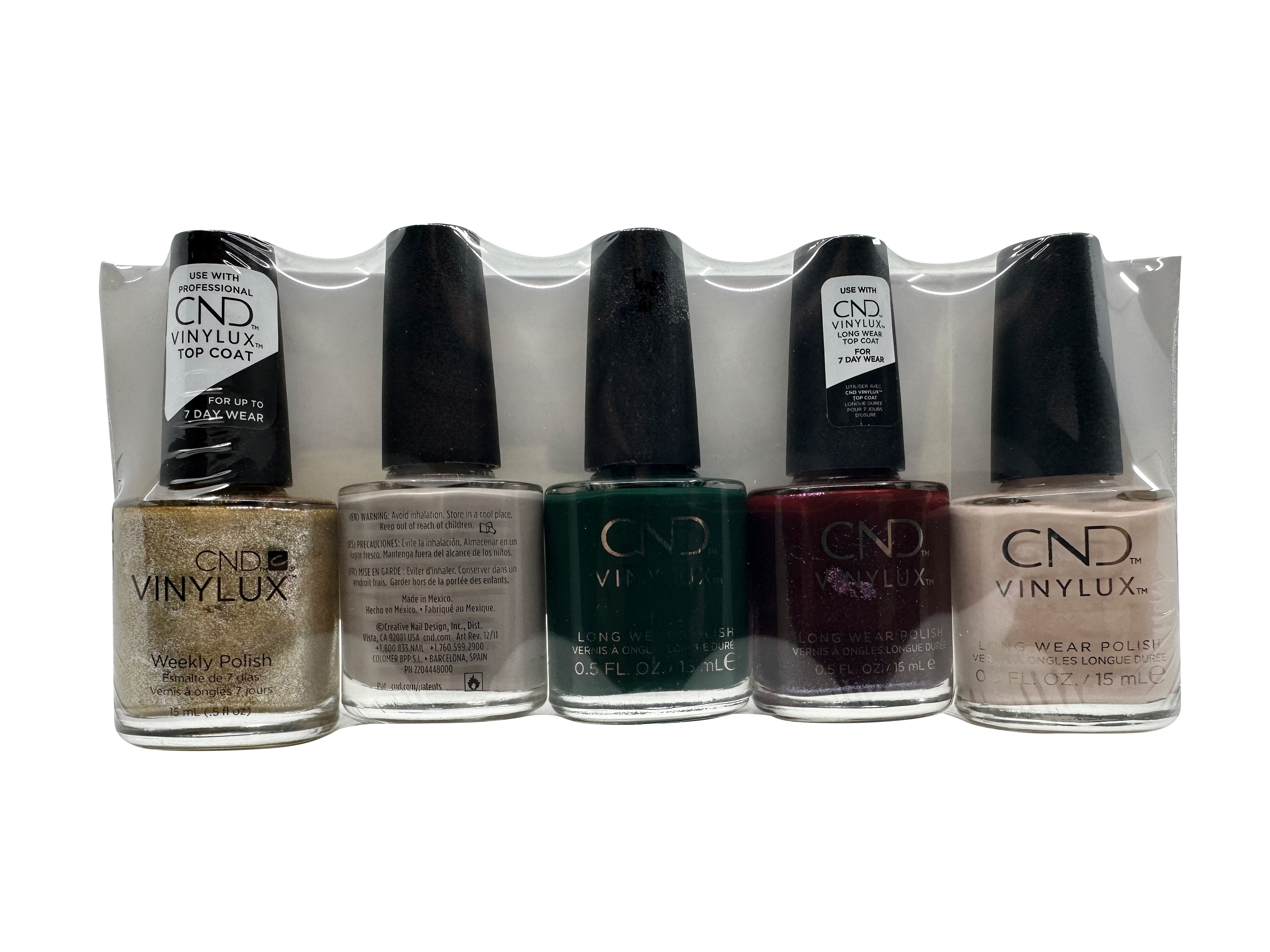 CND Vinylux Nail Polish Variety Pack Set offers you a variety of high shine, long wear colors to choose from, so that your manicure always looks perfect. This is a set of 4 nail polishes. CND Vinylux Nail Polish is a cutting edge formula for those who want long wear nail polish with top shine. This nail polish formula lasts up to 7 days. Goes on flawless, streak free finish, and enhanced shine. This formula is made Formaldehyde Free, Tolune Free, Dibutyl and Phthalate Free. Comes in 14 shades. Chip resistant for up to 5 days. How to use: Pre treat nails with cuticle oil and clean them off well. Apply two thin coats of the Vinylux Nail Polish. Complete Vinylux Top Coat. This is a high pigment, full coverage nail polish. Protects nails and leaves them looking flawless. Colors include Brass Buttons, Unearthed, Aura, Skin Tease, and Rebellious Ruby.