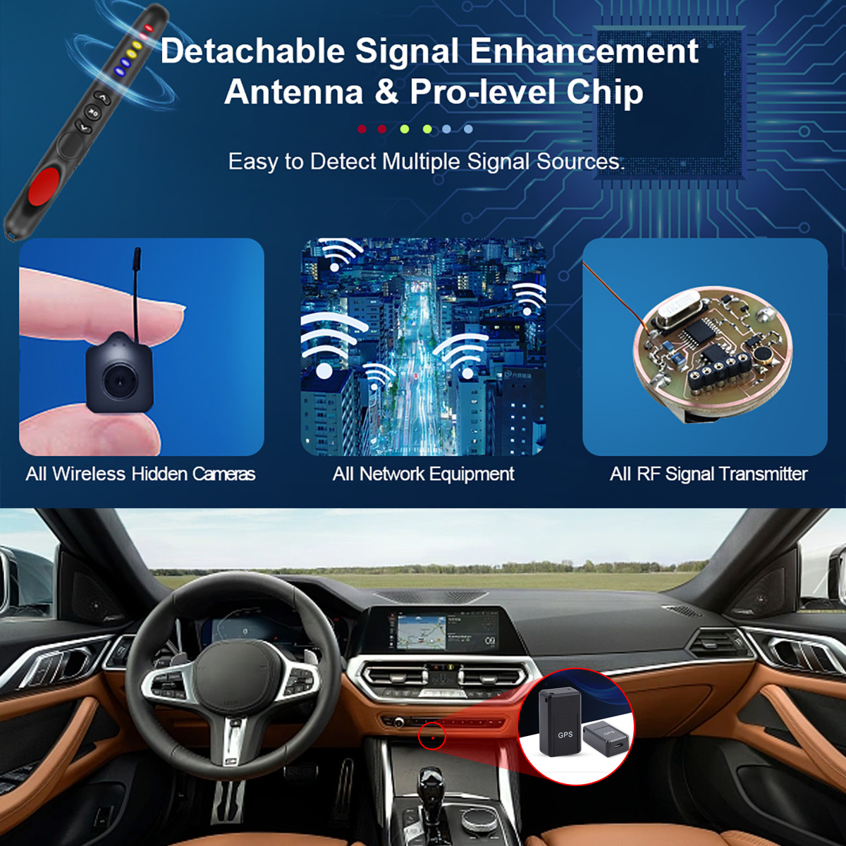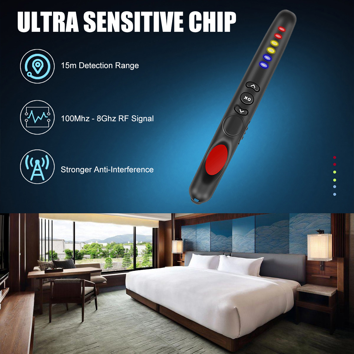 1. Detect RF signals, Hidden WiFi mini camera, cellphone signal bugs, and wireless listening device