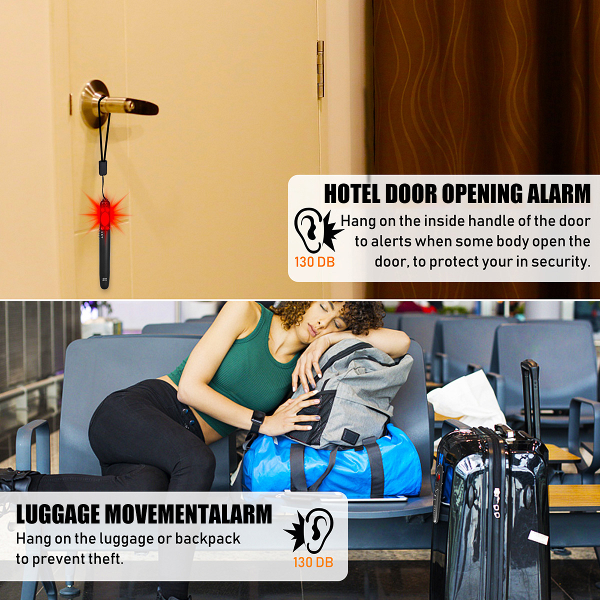 3. Door alarm & luggage alert, the device built in vibration sensor to alarm immediately when the sensor is triggered