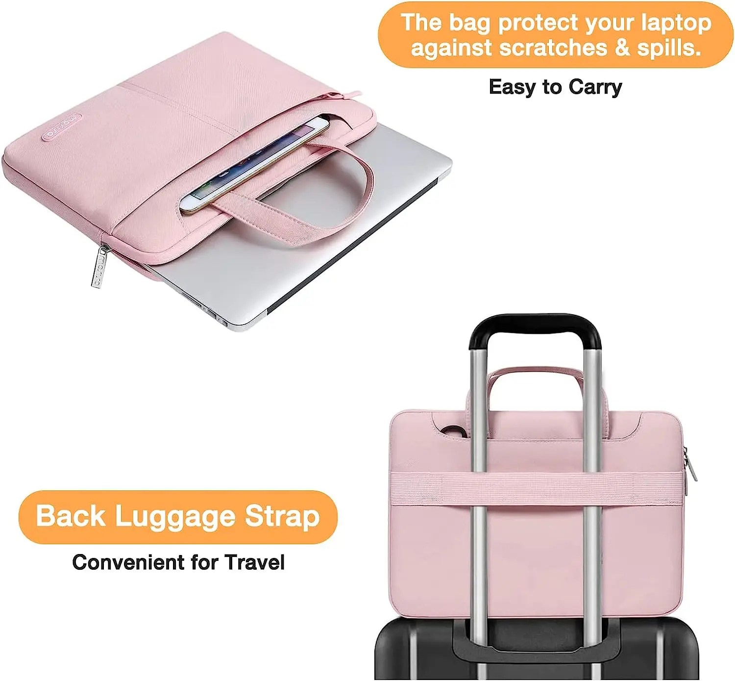 The laptop sleeve bag with shoulder strap carrying case bag is made of polyester material, protect your laptop against accidental spills.