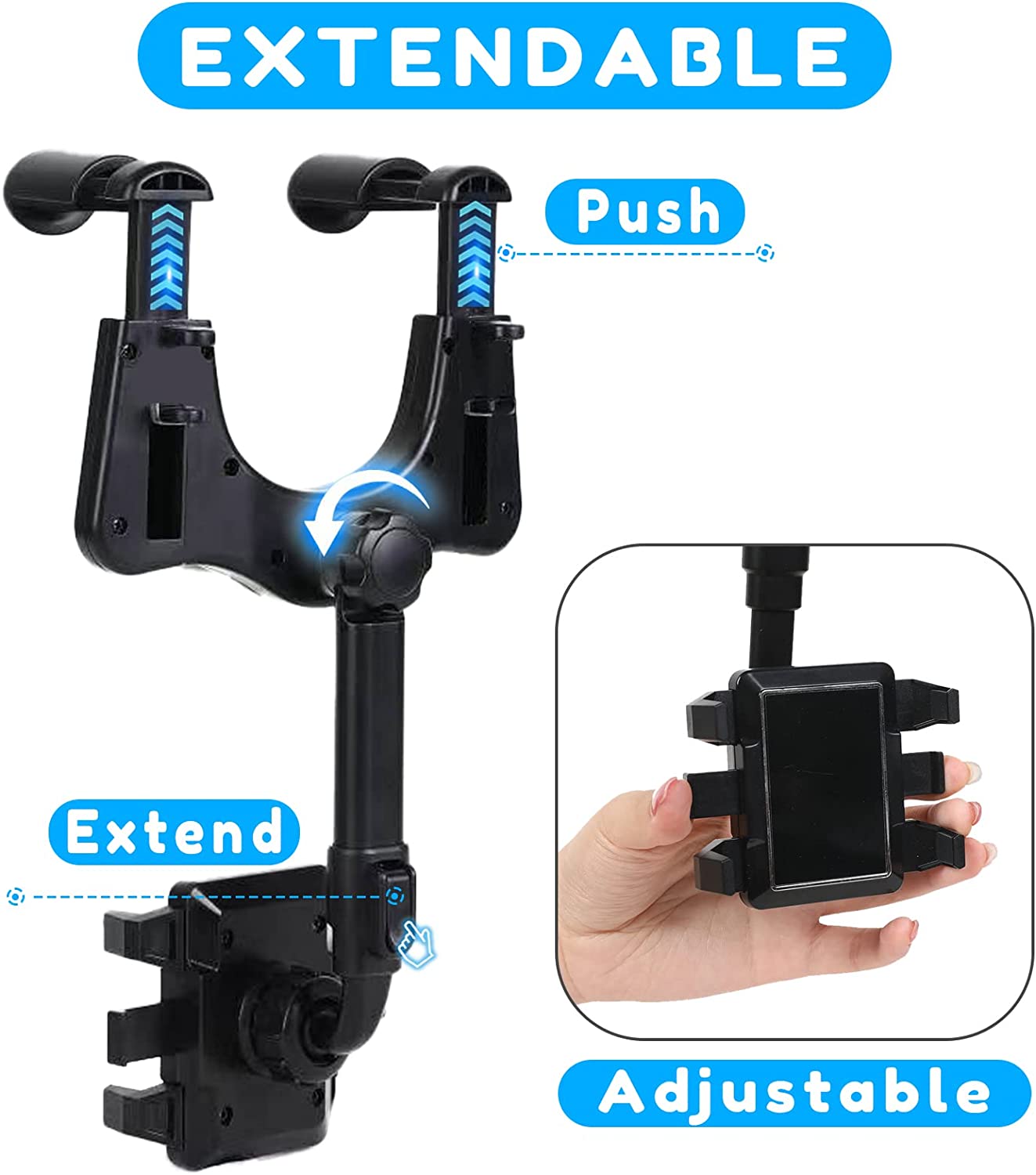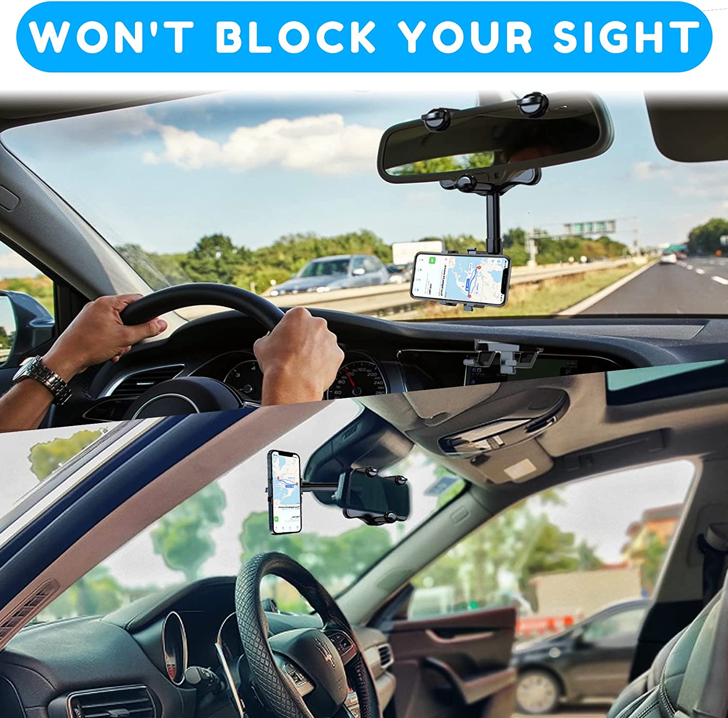 2025 Upgrade: Combining the advantages of rearview mirror arm phone holder and rearview mirror frame phone holder, this rear view mirror phone mount for car can keep the phone stable, but also has the function of rotating and telescoping, which is a perfect mirror phone holder