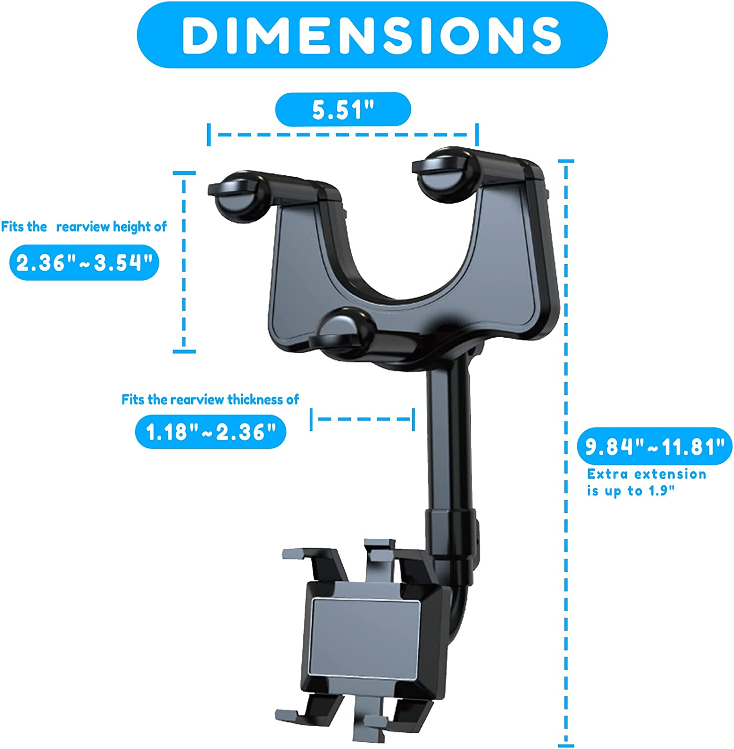 Wide Compatibility: This universal rearview mirror phone holder is suitable for almost all cars and all smartphones from 4 to 7.5 inches, just measure the distance with your fingers in the way shown in the picture before purchase to make sure the car phone holder can be perfectly installed in your car.