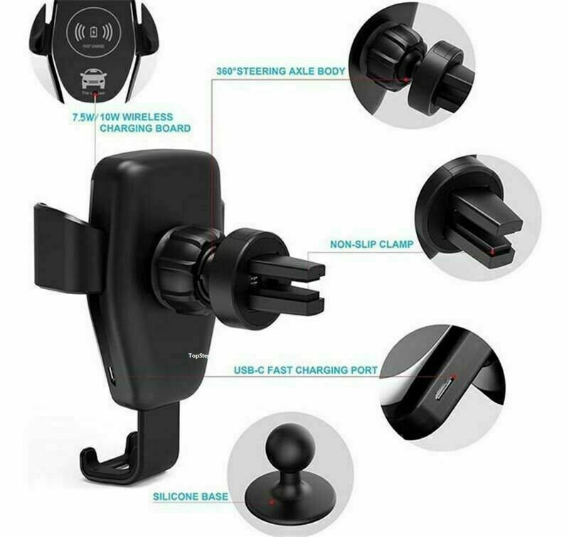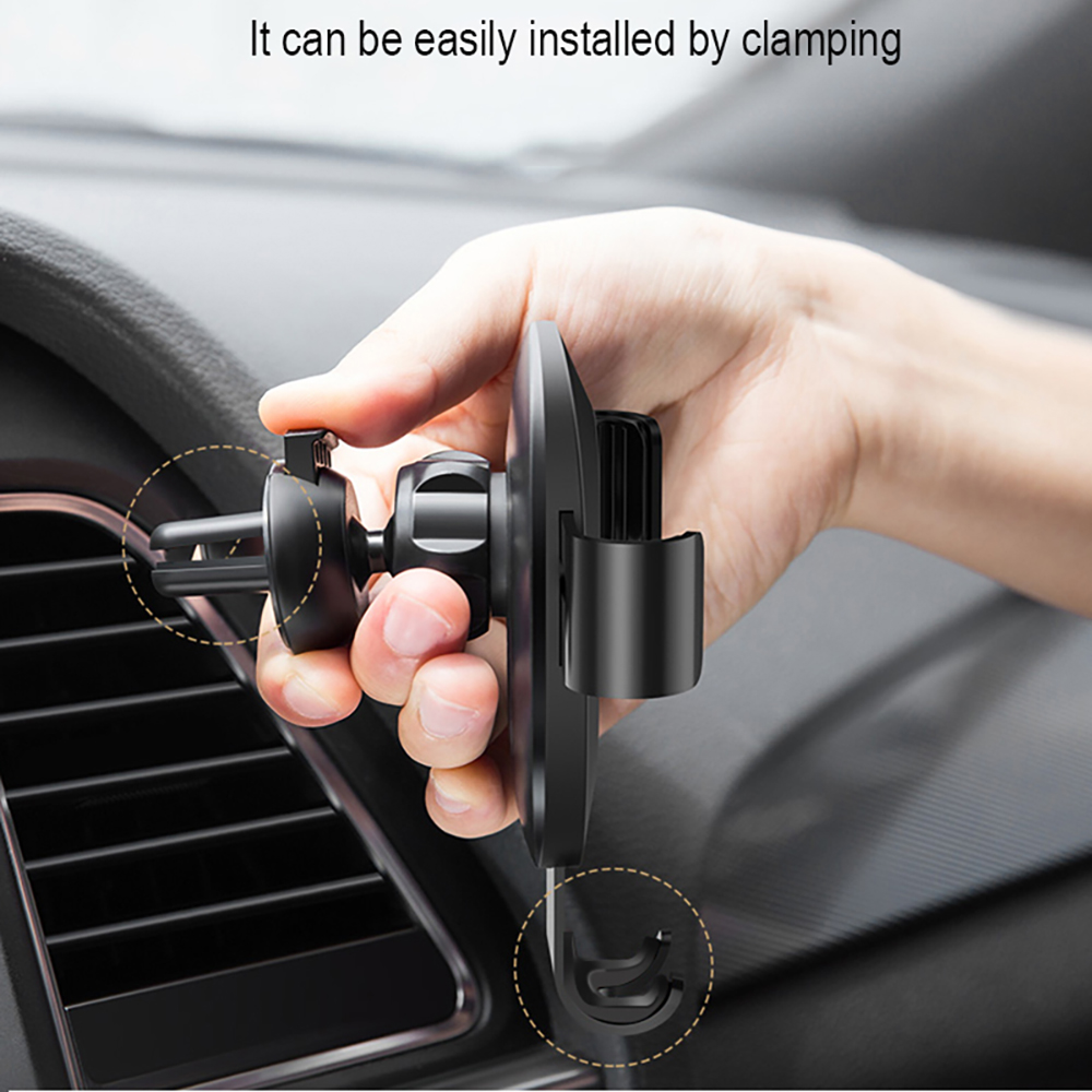 The fast wireless car charger, with soft silicone on the phone clamp arm and air vent mount, will held your phone securely and prevent it from falling off. Besides, the hook on the end of the air vent mount makes the car charger fixed more securely on your car. And these smart design won't scratch your phone or damage your car.