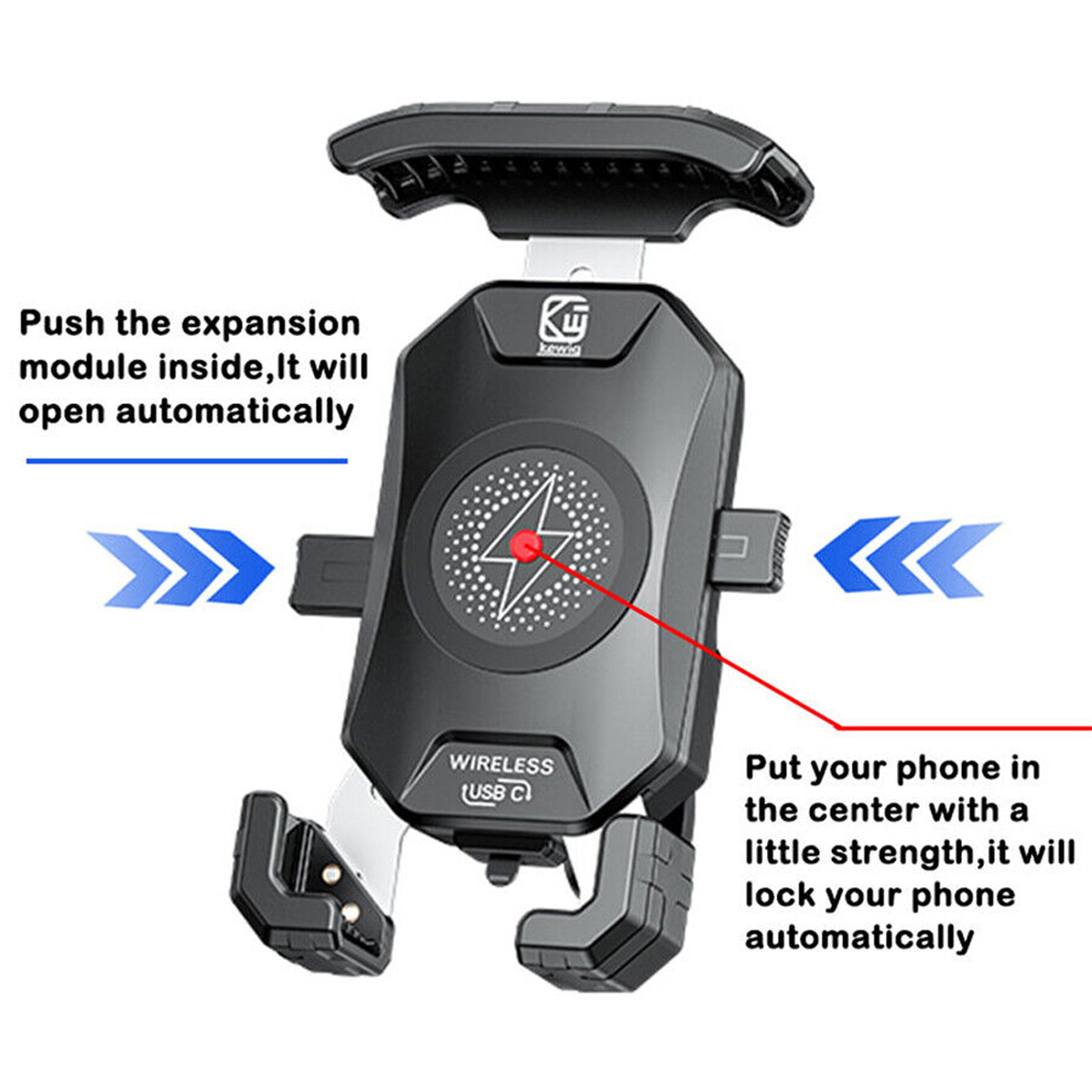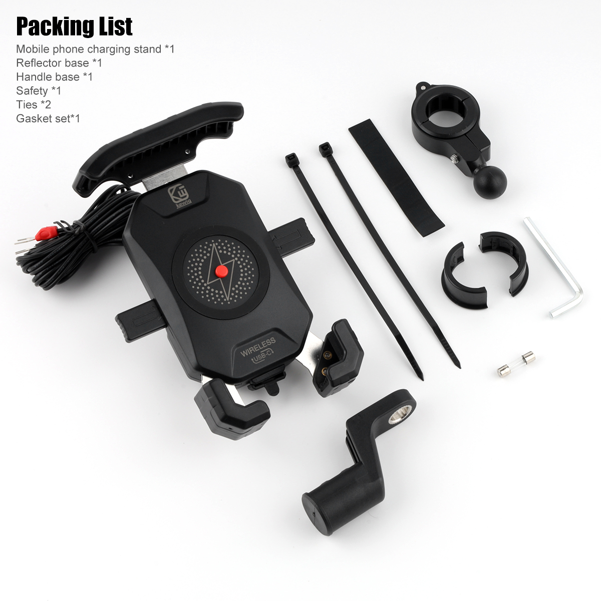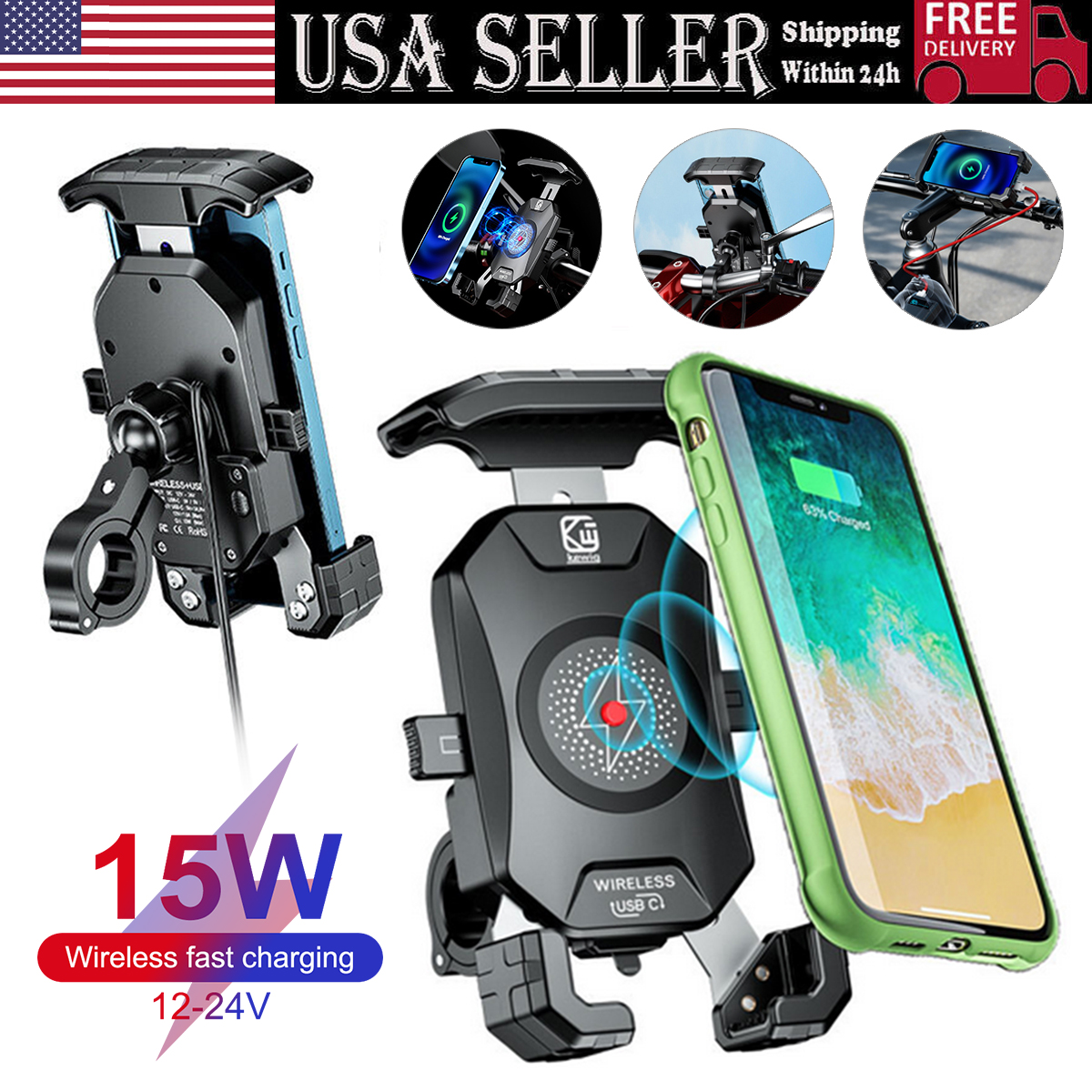 Motorcycle Cell Phone Mount Holder Wireless USB Charger 15W Fast Charging NEW