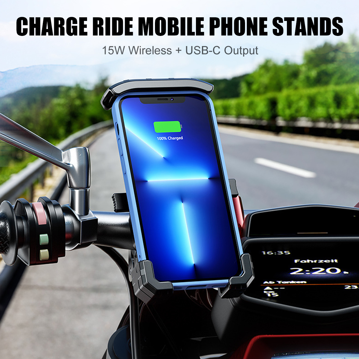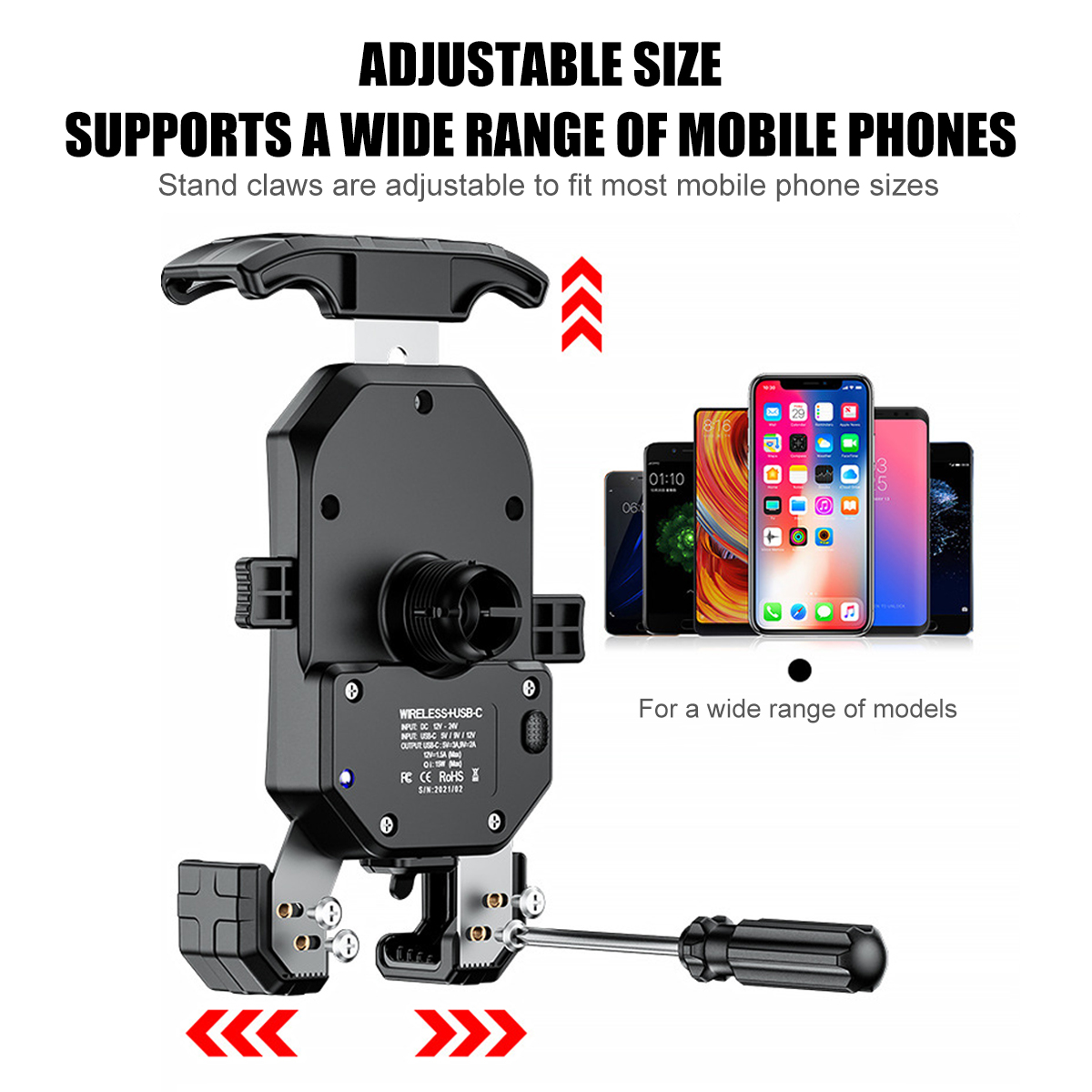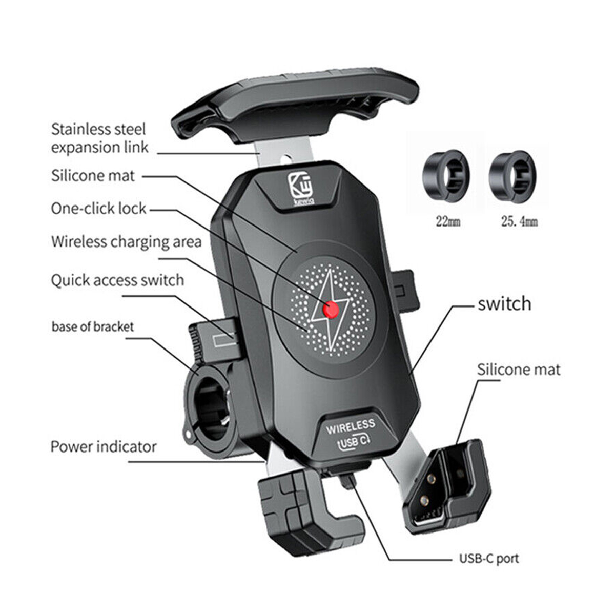 Motorcycle Cell Phone Mount Holder Wireless USB Charger 15W Fast Charging NEW