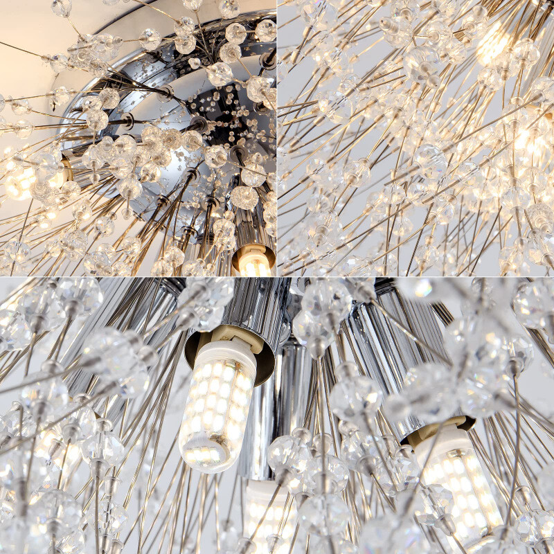 Dimension: 70*38cm Material: Metal and Crystal Color: Silver Power Rating: 60W Max For Each Holders Voltage: 110V-250V Light Source: 8*G9 LED Bulbs Suitable Space: 10-25 square meter Apply to: Kitchen,Office,Room,Home,Hotel,Bar,Warehouse,Restaurant,Coffee Shop…