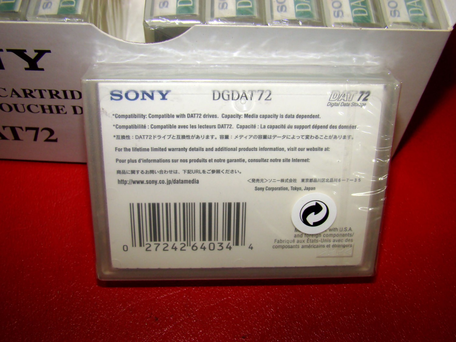 You are bidding on ONE SEALED IN FACTORY PACKAGE Sony DAT72 Data Tape Cartridge 36/72GB #DGDAT72WW . We are displaying all the boxes of these cartridges that we have in stocks. This auction is for ONE CARTRIDGE. Happy Bidding!!!