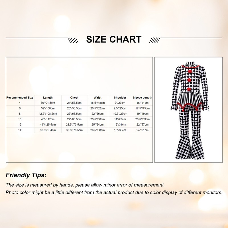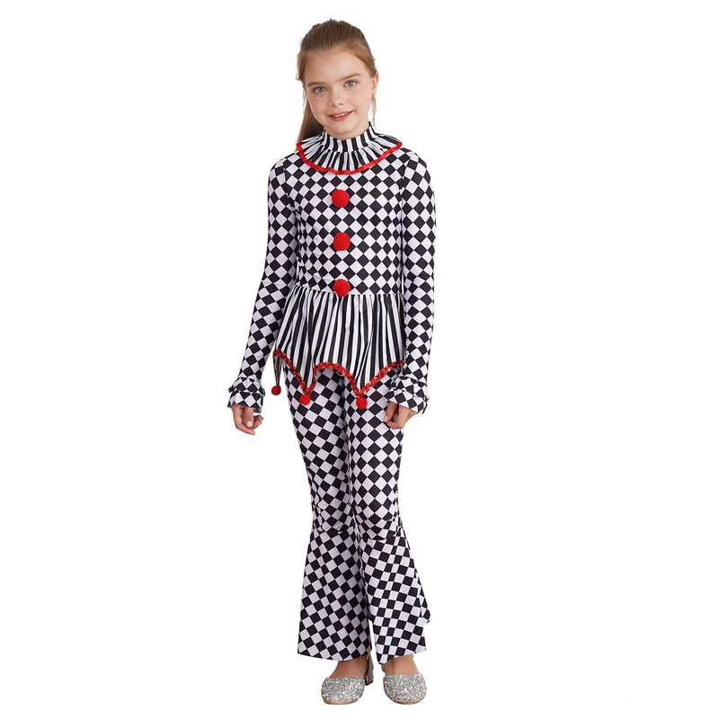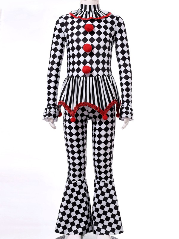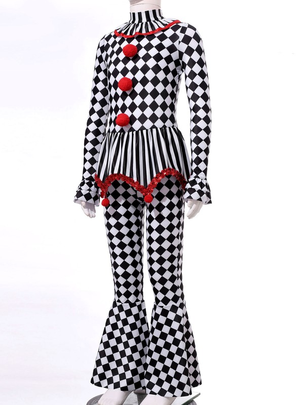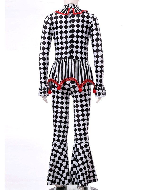 The checkerboard and stripes printed costume jumpsuit maks your clown cosplay classical and stylish.