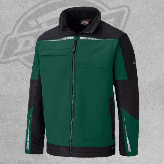 Dickies Pro Full Zip Soft Shell Workwear Work Coat Jacket - Green/Black