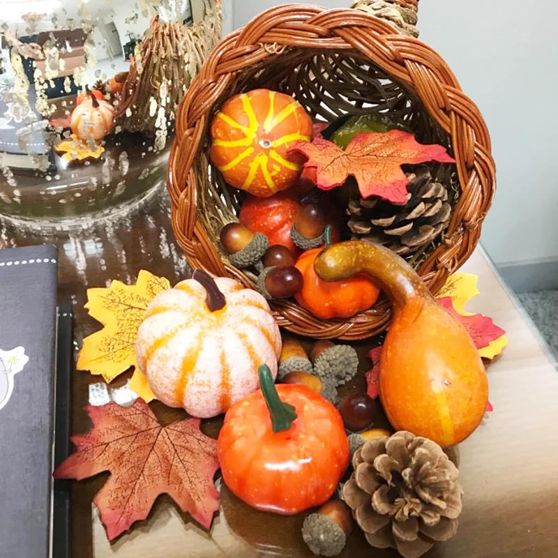 Halloween Decoration Mini Artificial Pumpkin Maple Pine Cones Holiday Decor NEW