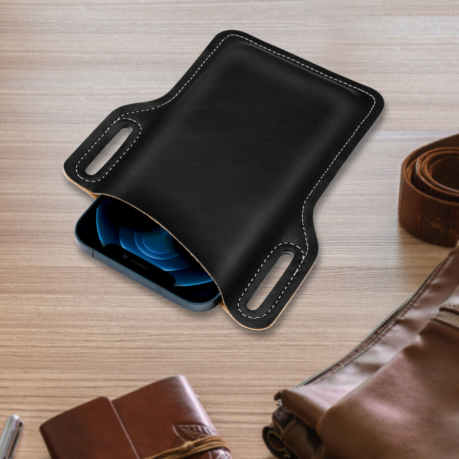 Wearing Style: Retro, leather, mobile phone bag, belt.