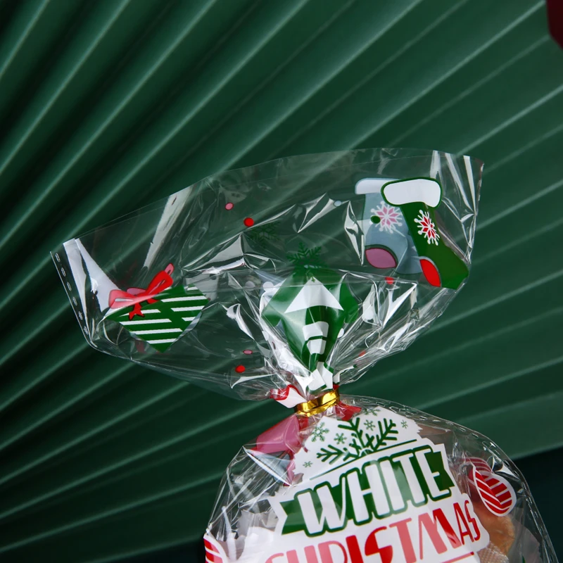 50pcs Christmas Candy Cookie Plastic Bags Holiday Favors Gift Packaging Supplies