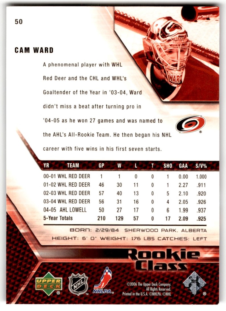 | Cam Ward 2005-06 Upper Deck Class Box Set Rookie #50 Carolina Hurricanes |