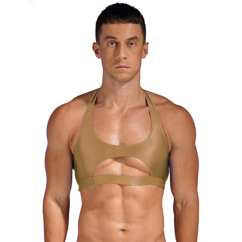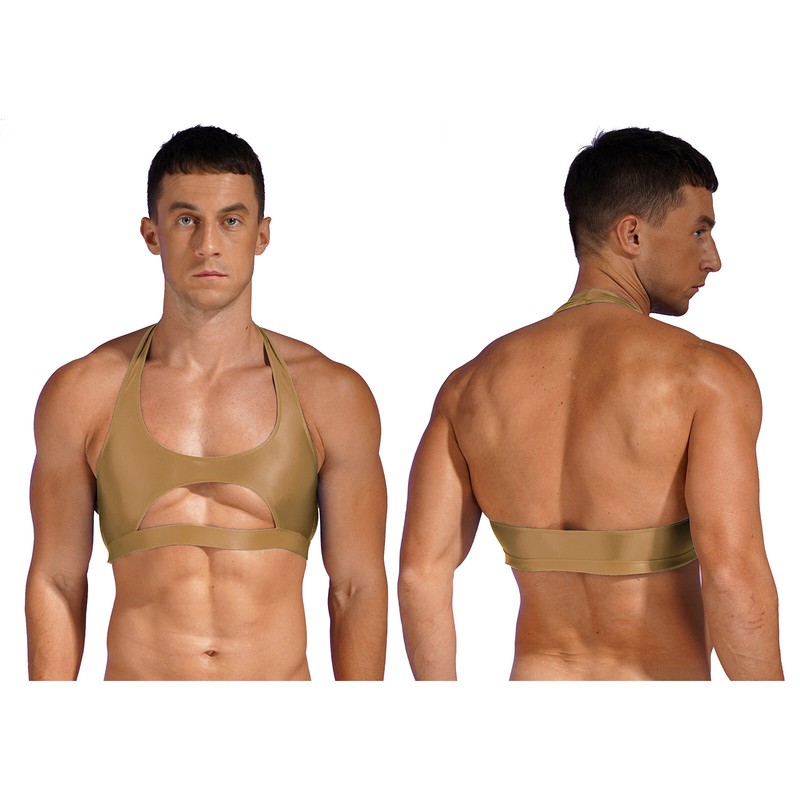 Halter vest for men, backless, sleeveless, cropped length and cutout design highlights your muscles and makes you more attractive.