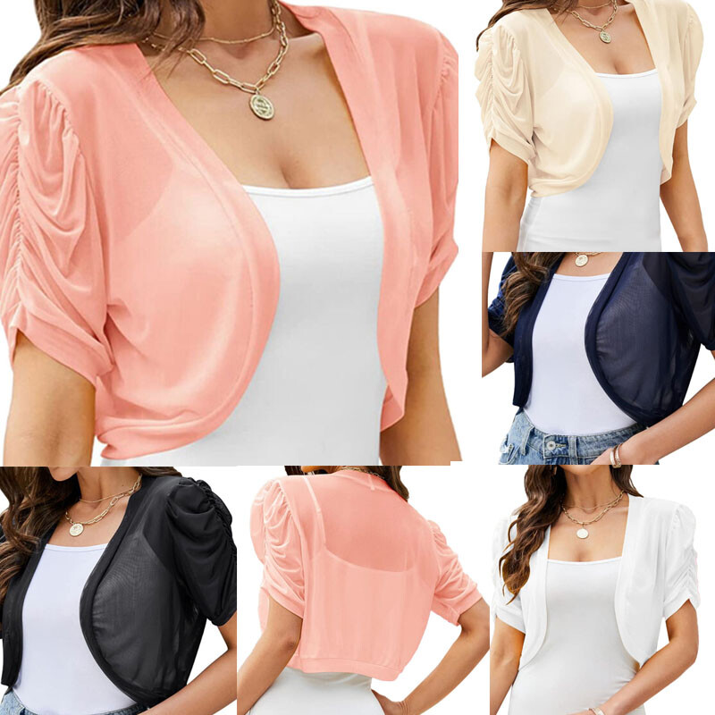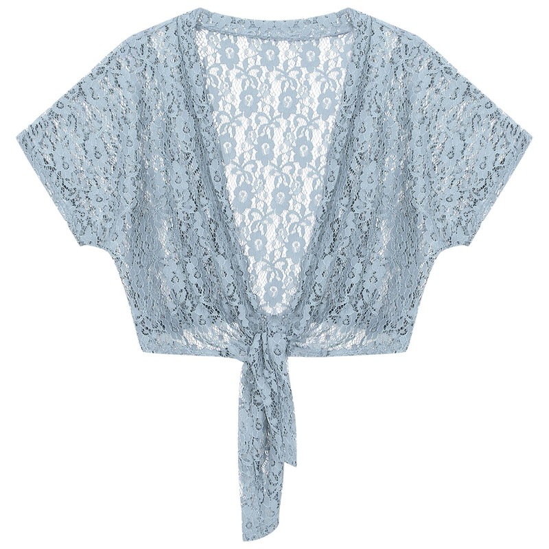 Womens Hollow Out Lace Cardigan Bolero Short Sleeve Lace-up Crop Top Cover Ups.