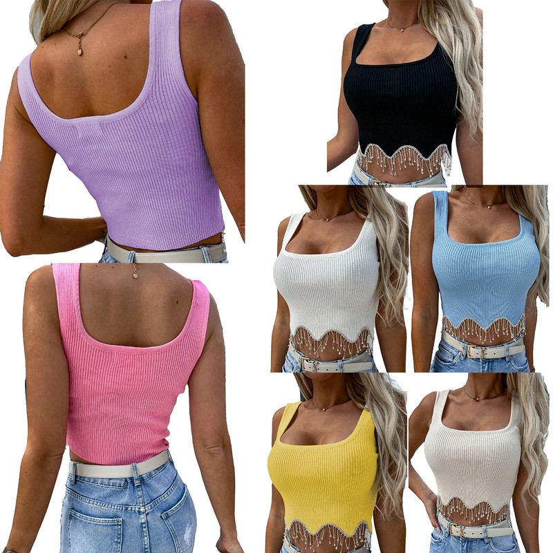 Spaghetti shoulder straps and U neckline, solid color, easy to wear with shorts, pants, leggings.