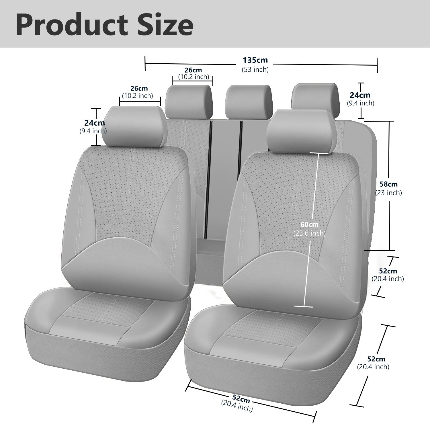 2 front seats: 118*56cm