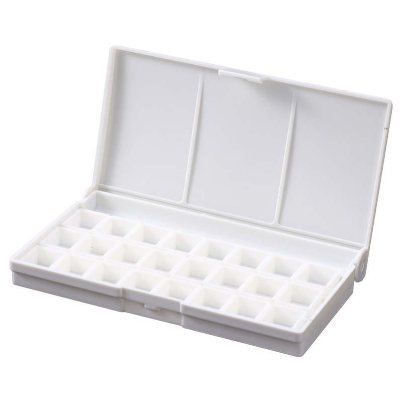 Useful white plastic watercolor paint palette and half pans set empty palette assembled pans with lid for art students.