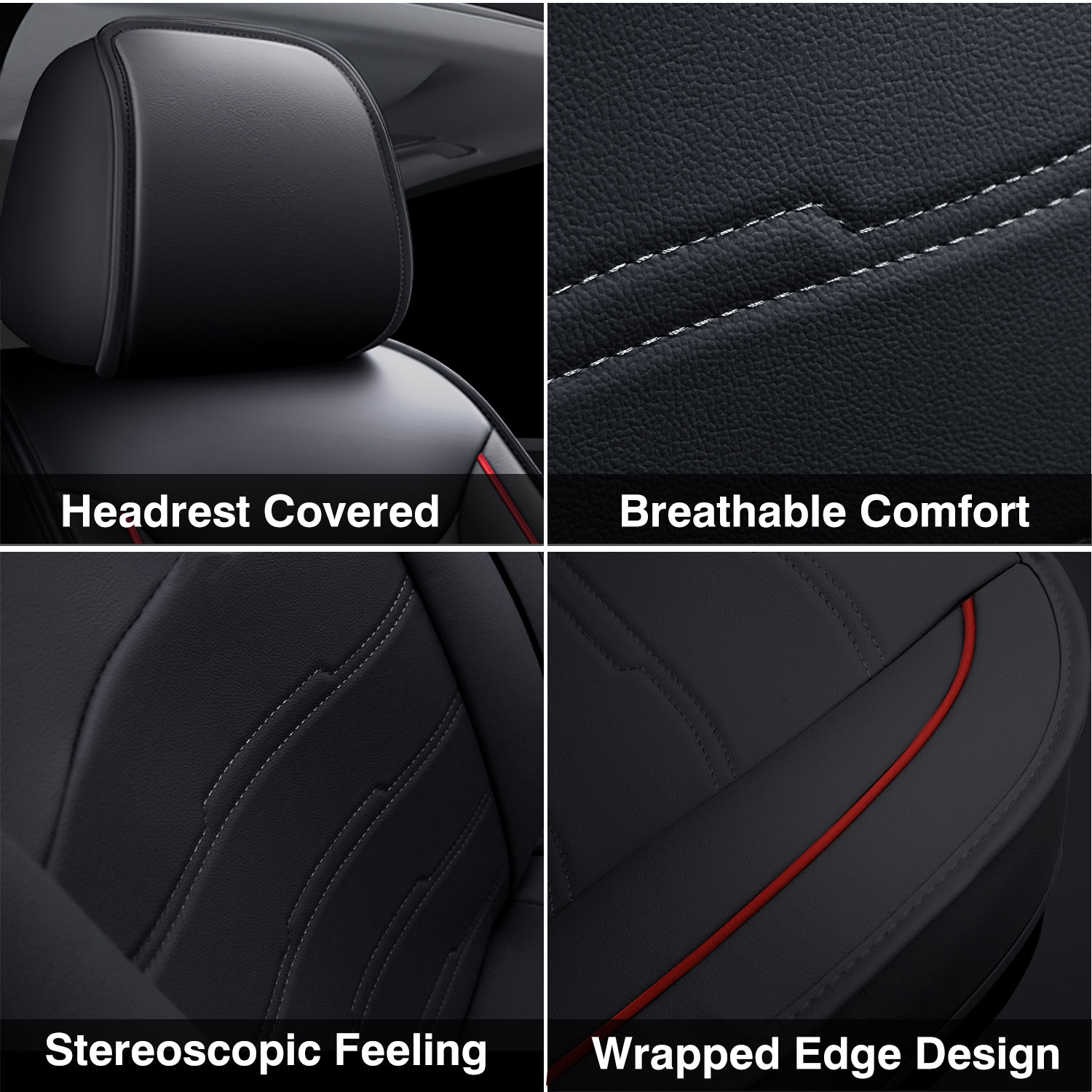 [HIGH-QUALITY MATERIAL] Surface material made of high quality faux leather which is soft, durable and waterproof,delicacy perforations bring breathable comfort experience.The middle part use high rebound sponge,create top resilience for maximum comfort during your drive. Non-slip fabric is used on the bottom layer,keep the covers in place so you can get in and out worry free.