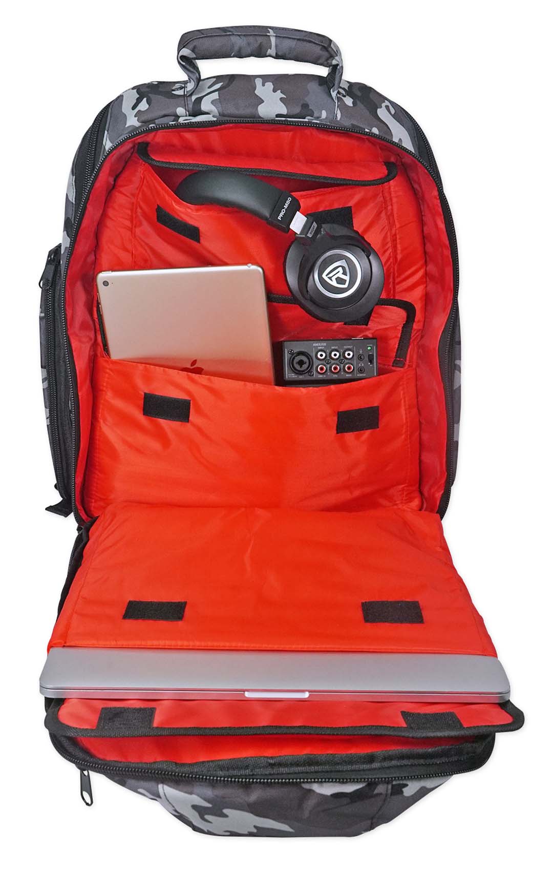 The Rockville RVCAMOPACK is a durable padded Gear bag that lets you take your gear from gig to gig protected and in style! This backpack style bag has heavy duty zippers and plenty of pockets and dedicated compartments equipped with elastic bands to store all your necessities such as laptops, DJ controllers, microphones, interfaces, cables, hard drives, headphones, vinyl, and much more. In addition this bag is fully padded and even has padded interior dividers so you can be organized and confident your gear will be protected during travel.