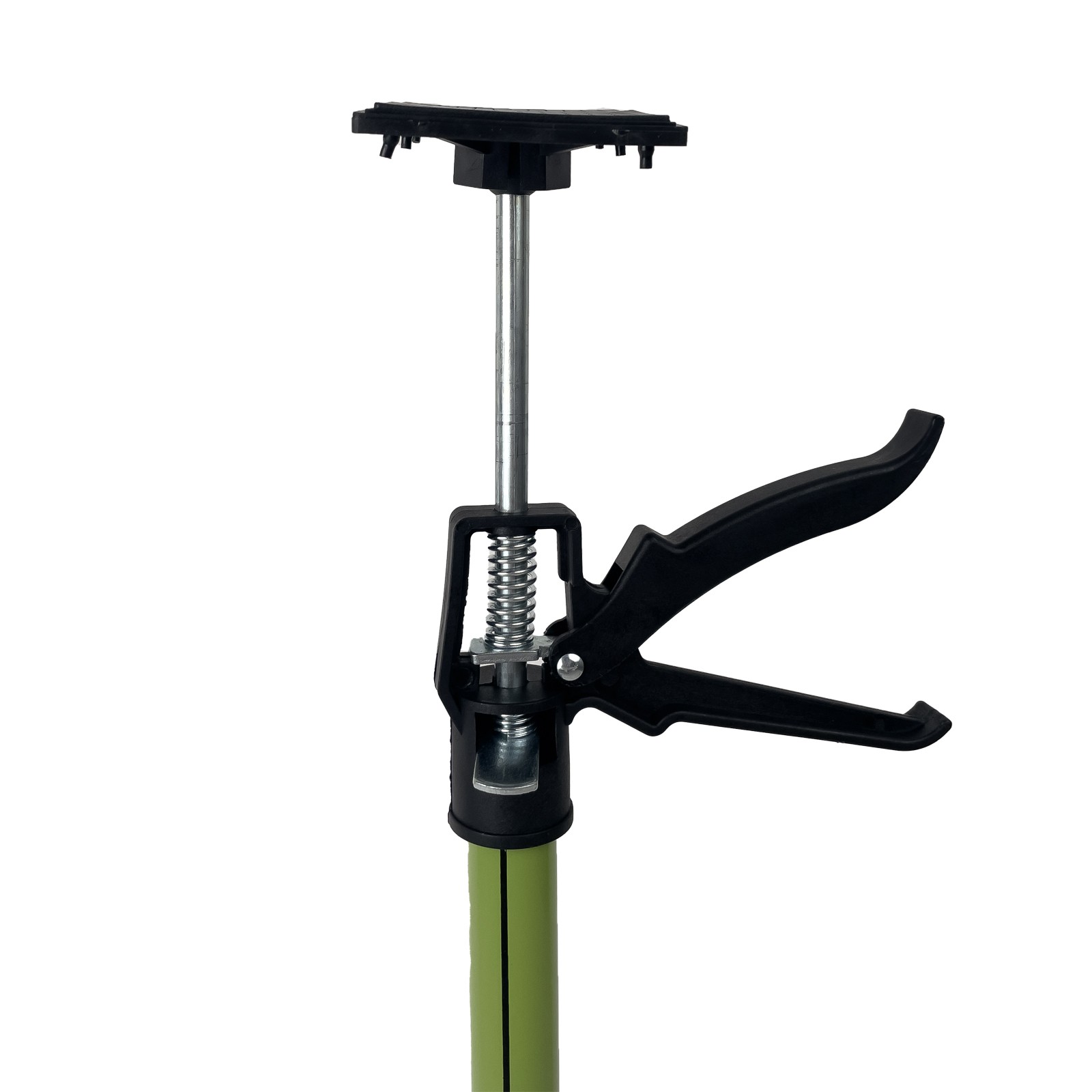Diese ,,dritte Hand“ ist ein praktischer Helfer und unterstützt Sie, Ihre Materialien zu montieren, ohne dass eine weitere Person benötigt wird. Das kann auf der Baustelle, beim Hobby oder im Haushalt sein. Ideal ist die Einhandstütze bei der Montage von Fenstern, Türen oder z.B. beim Anbringen von Regalen die an der Wand zu befestigen sind. Der Zargenspanner ist immer einsatzfähig. Durch das Klick-System im stabilen Stahlrohr und der Hebetechnik im Handgriff ist diese Teleskopstütze schnell einsatzbereit und bietet einen sicheren Halt. Ein Kugelgelenk in der oberen und unteren Stützplatte ermöglicht eine Neigung der Einhandstütze um 45°. Die mit Gummi besetzten Druckplatten sorgen zusätzlich für einen beständigen Halt. Außerdem sind die gummierten PVC Druckplatten auf den Rahmen der Fenster und Türen materialschonend.