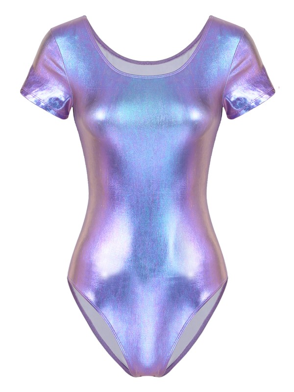 Damen Metallic Body Kurzarm Trikot Tanzkostüm Karnevalsksotüm Club Tanztrikot