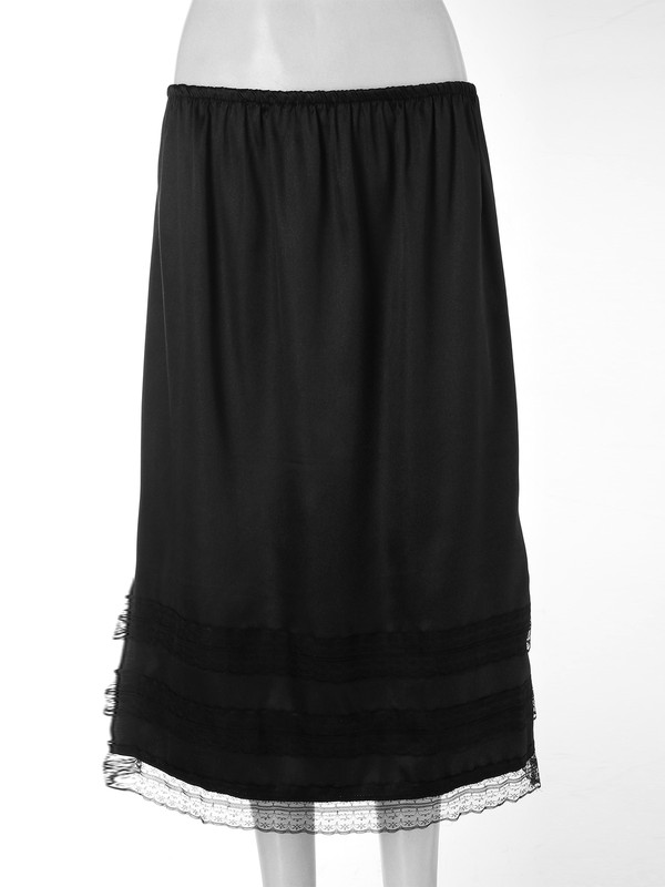 Damen Unterrock Vintage Satin Halbrock Midi Petticoat Lang Mit Lace Underskirt