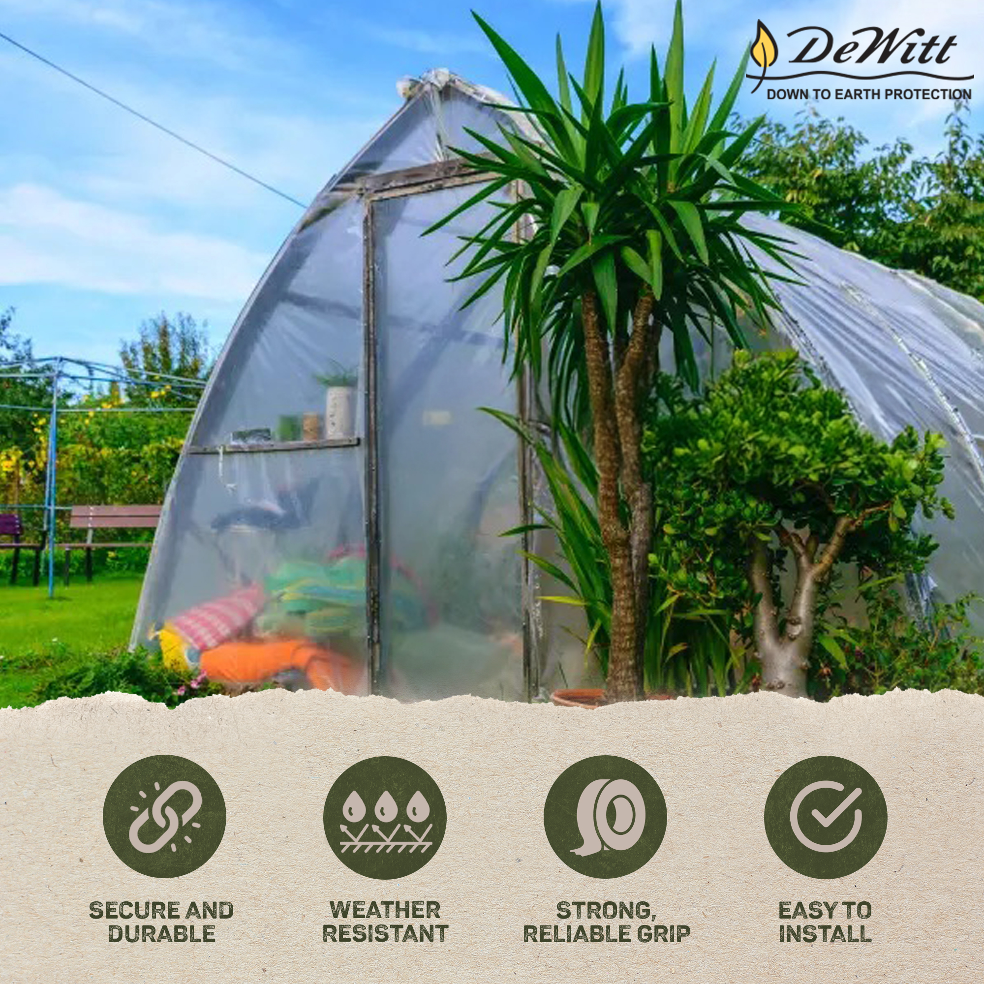 Greenhouses are great structures for extending the lives of plants and for cultivating crops in harsh conditions. But keeping the plastic covers on greenhouses can be tricky with the elements. A solution to that problem is the DeWitt 100-Yard x 2.75-Inch Greenhouse Batten Tape.