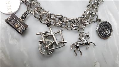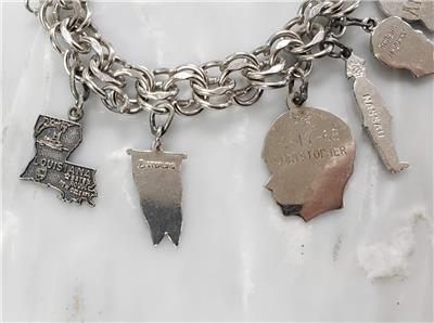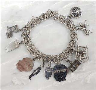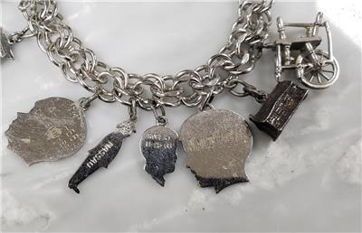 Vintage ELCO Sterling Silver Double Curb Link Charm Bracelet w/ 10 Charms