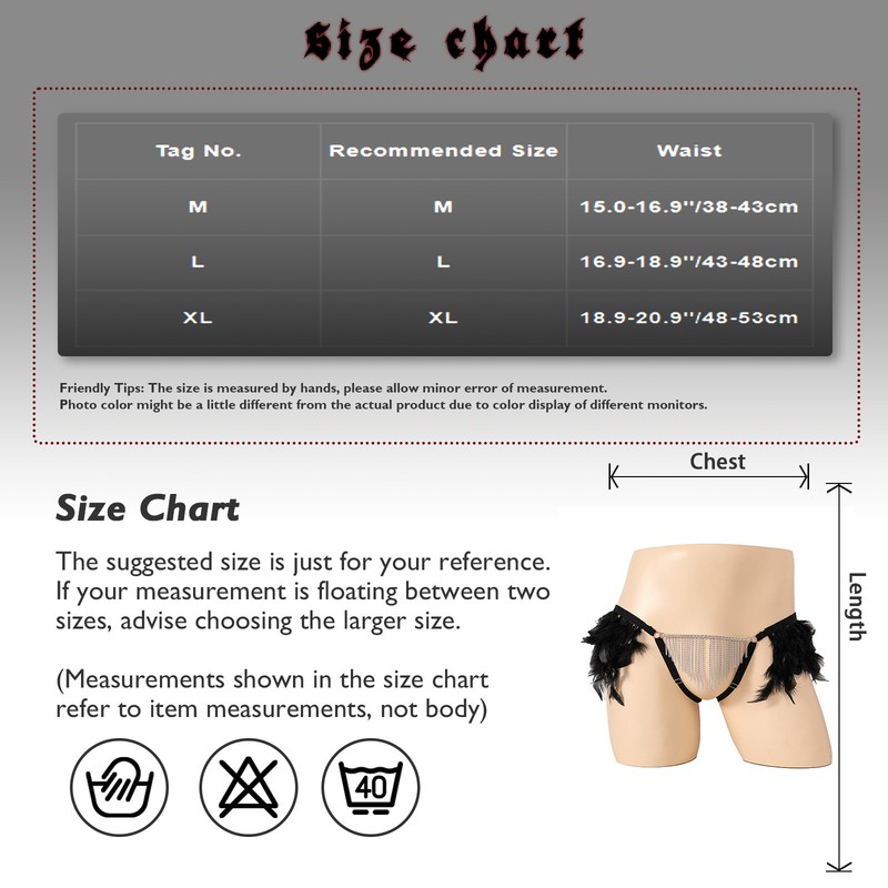 Suitable for club wear, dating night, Valentine’s Day, wedding, transvestite, romantic night, carnivals, bachelor party, etc. Size Chart