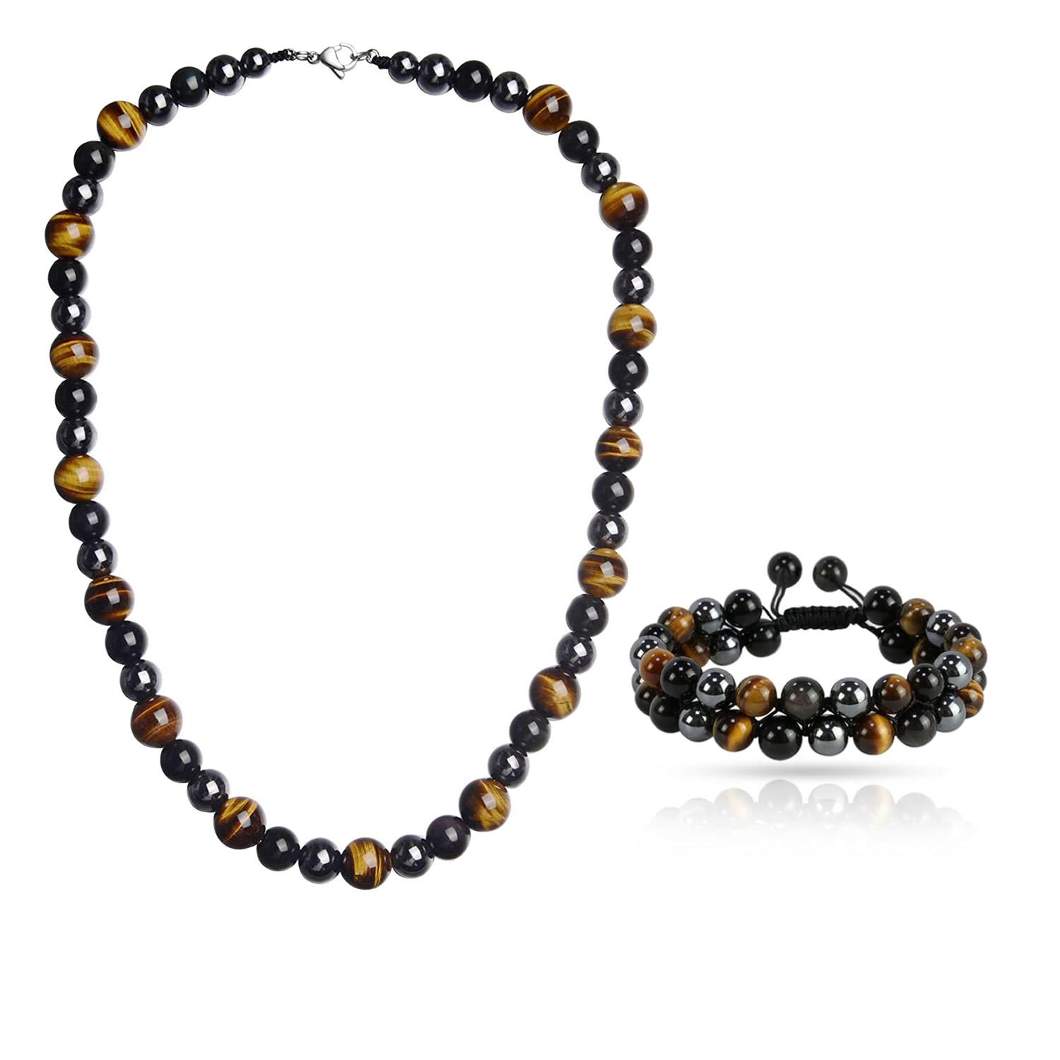 NATURAL STONE BEADS】This triple protection necklace and bracelet jewelry set is combined with African tiger eye, black obsidian and hematite. You will receive a beaded necklace and a breaded bracelet.