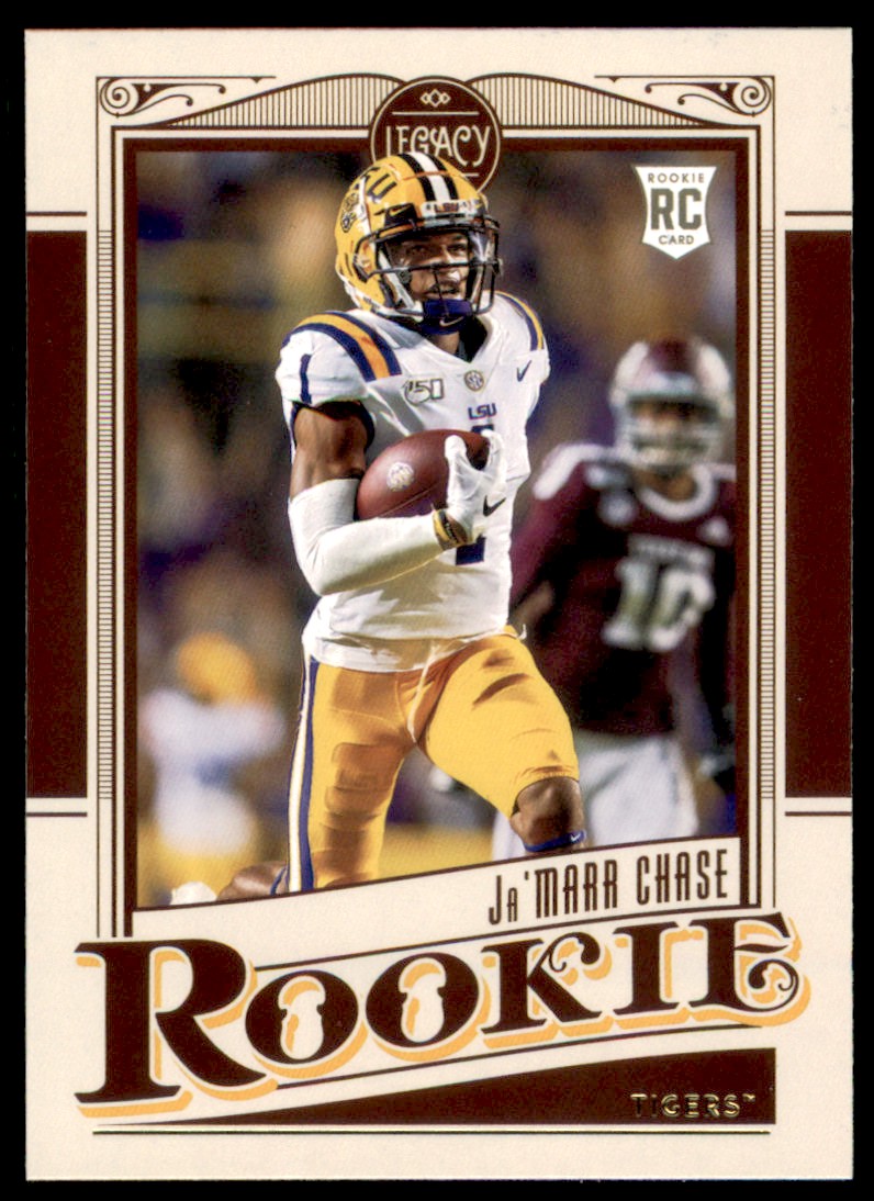| Description: | Ja'Marr Chase | | Category: | Football | | Year: | 2021 | | Product: | Panini Legacy | | Team: | LSU Tigers | | Card Number: | 150 | | Rookie: | Yes | | Dimensions: | 3½" x 2½" |