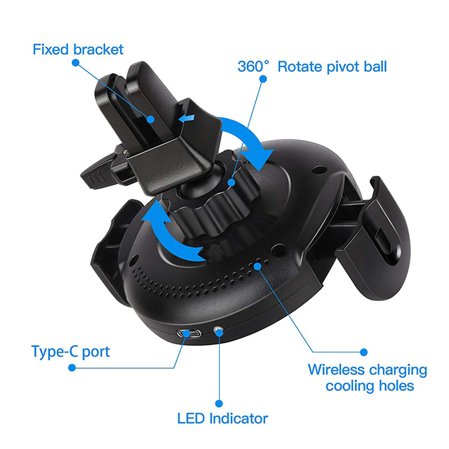 - 360°rotation: Supports 360 degree rotation, which enables you to find suitable directions to place your phone, you can lock the charger on the air vent too.
