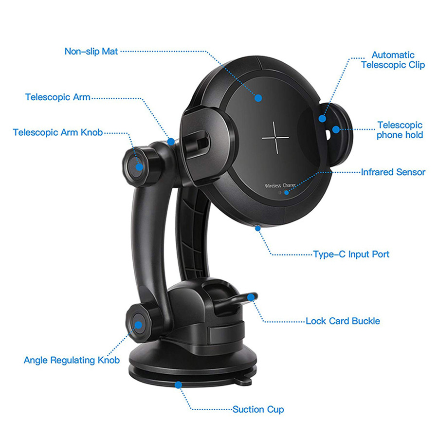 - Auto-clamping: Infrared induction,When chargers feels your phone approaching, the two levers will open and lock it automatically.