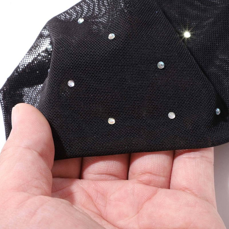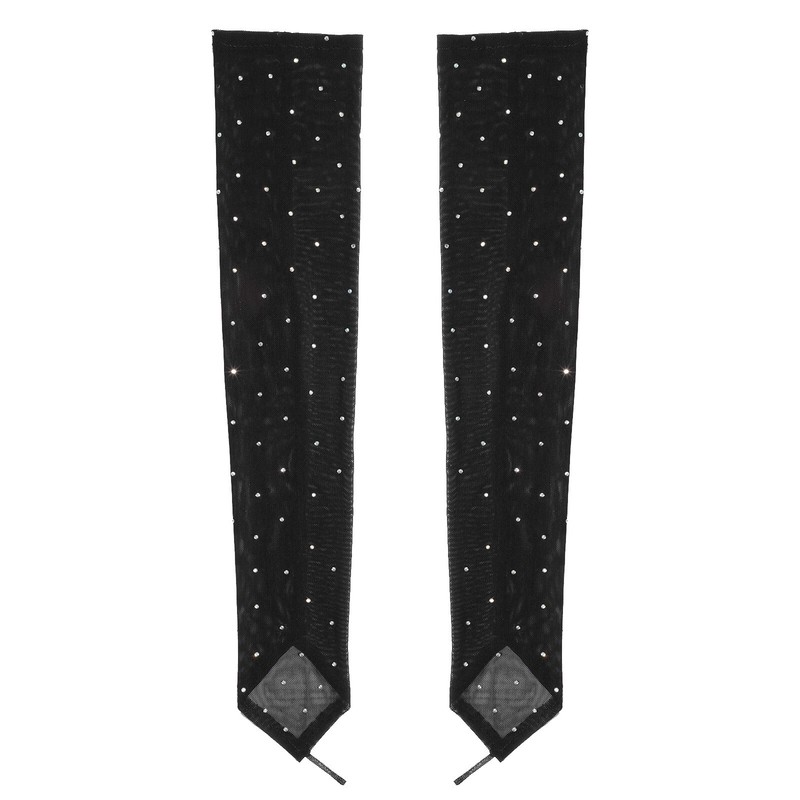 Mesh long gloves with the finger loop for fixing. The shiny colorful diamonds makes you eye-catching in the crowd.