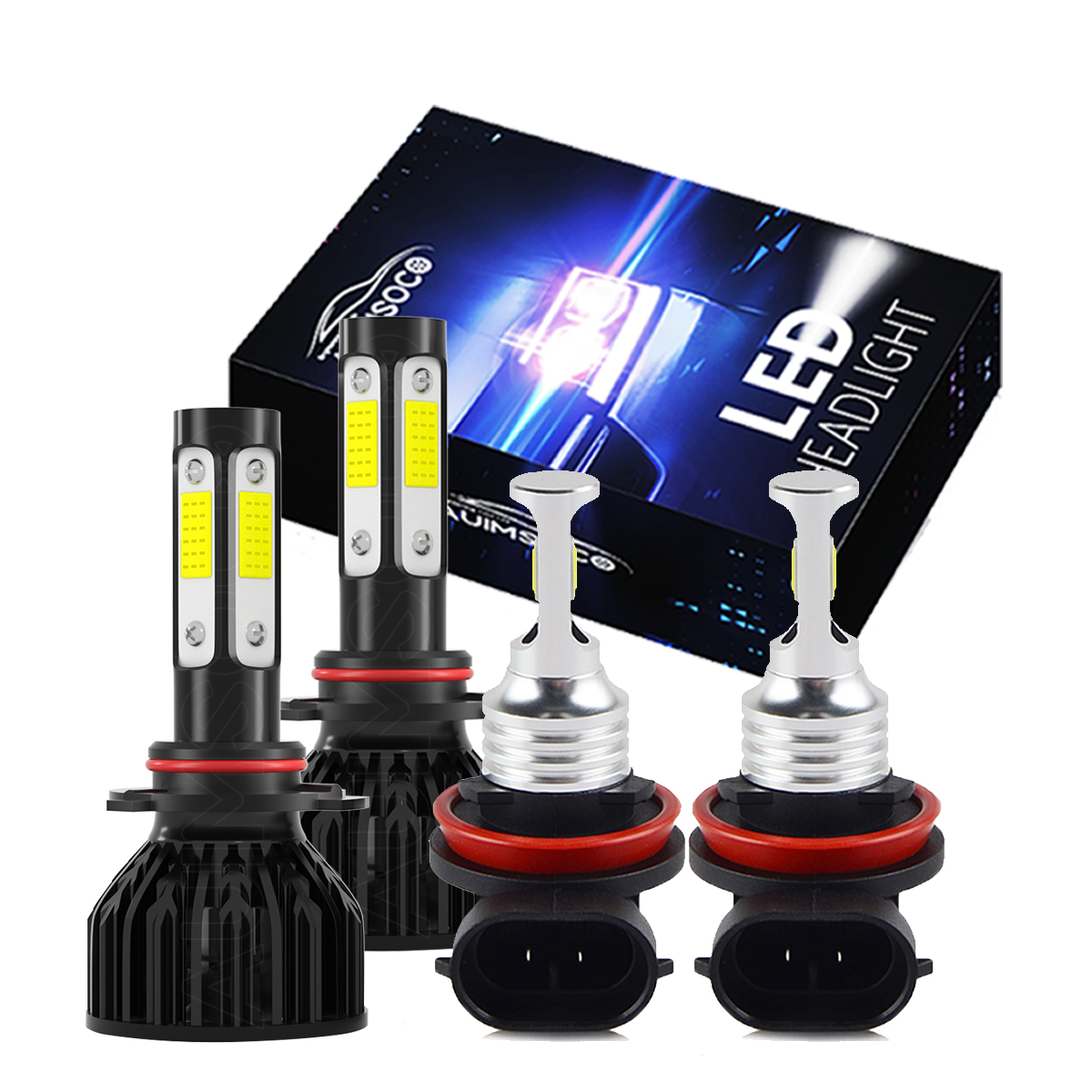 AUIMSOCO K9+3570 series 9005+H11 led headlights light, Upgrade 1860 LED Chips Light Source, it output 40W/bulb, 4000LM/bulb 6000K cool white LED light. 300% brighter than Halogen headlights. Light up your road but no blind others drivers. They have a perfect beam pattern without any dark spots or foggy light.