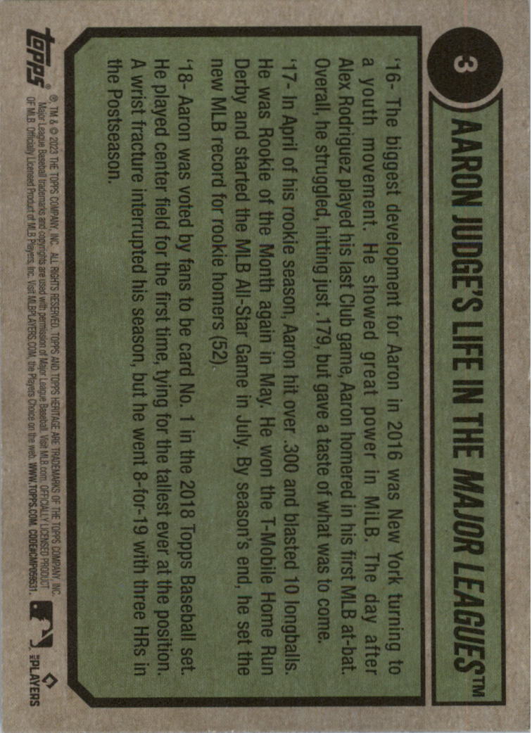 2023 Topps Heritage #3 Aaron Judge TRIBUTE - NM-MT