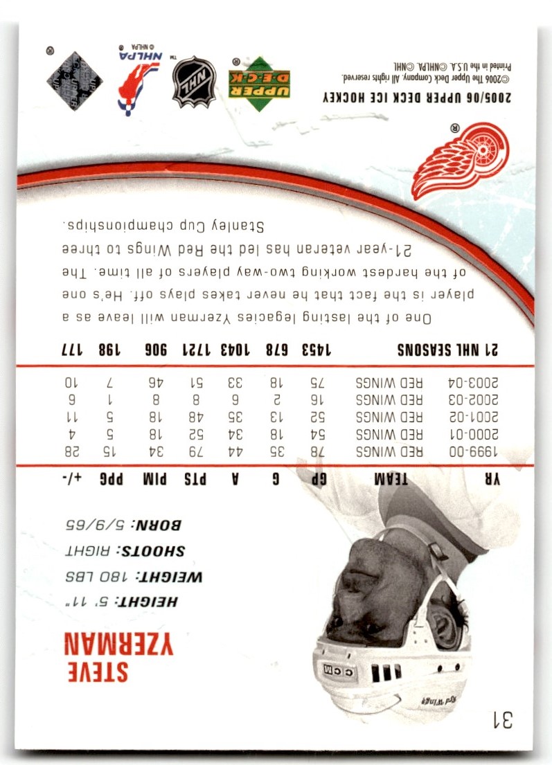 | 2005-06 UD Ice Steve Yzerman #31 Detroit Red Wings |