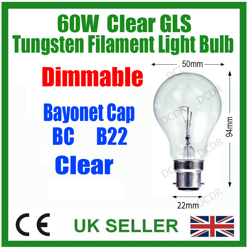 8x 60W GLS Incandescent Dimmable Standard Clear BC B22 Light Bulbs Lamp