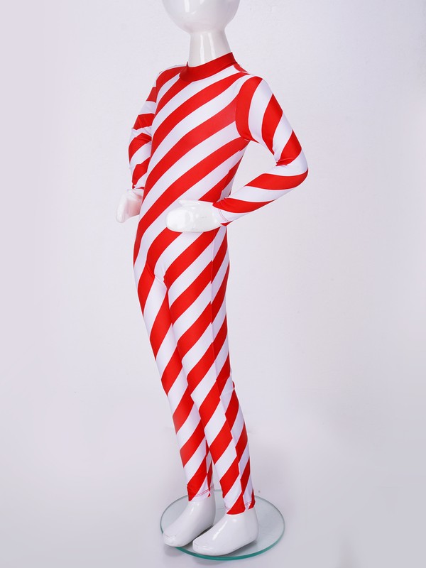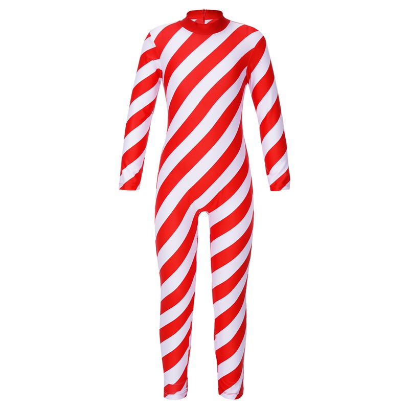 This jumpsuit snugly fits body and has no restriction of movements. Striped design dresses up girls as candy cane.