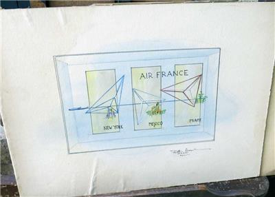 Whether you're a collector of vintage airline memorabilia or someone who appreciates the artistic legacy of mid-20th-century advertising, this 1950s Air France drawing is a rare and nostalgic treasure. Bid with confidence on this estate find that transports you to an era of elegance and travel excitement.